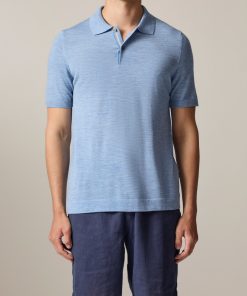 MAERZ Herren Kleidung Poloshirt|100% Merinowolle | Whispering Blue