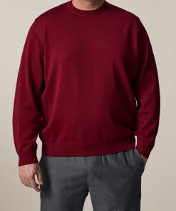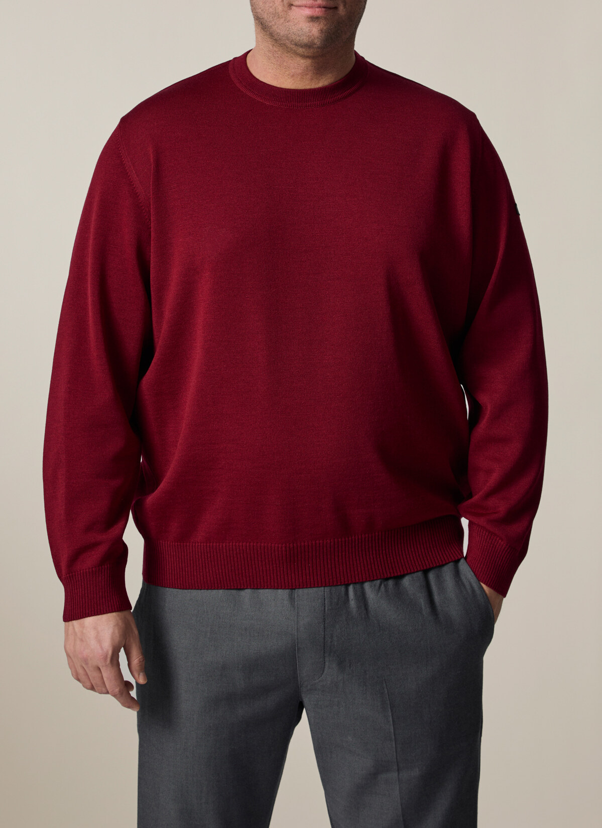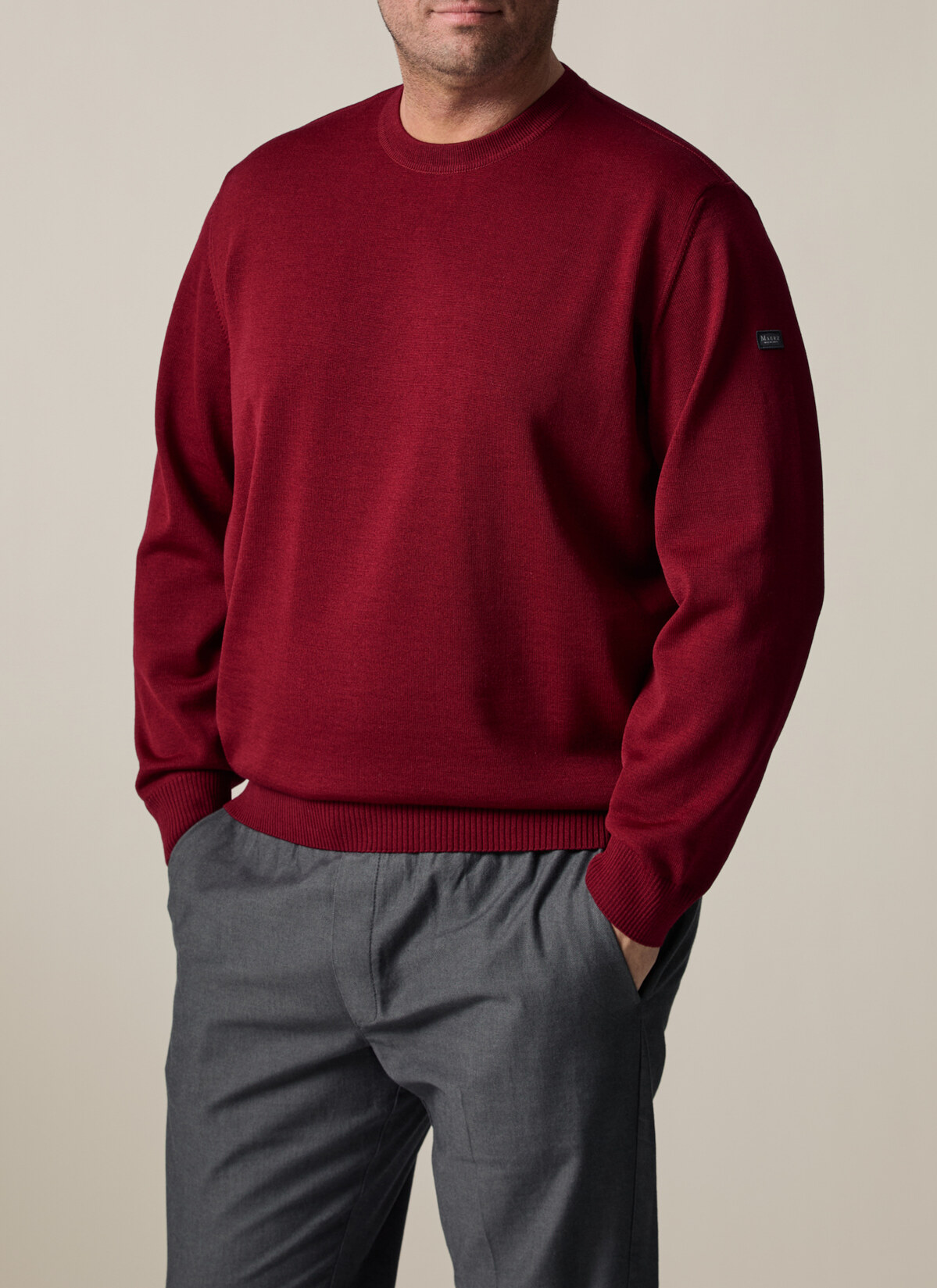 MAERZ Herren Große Größen Rundhalspullover|100% Merinowolle | Weinrot