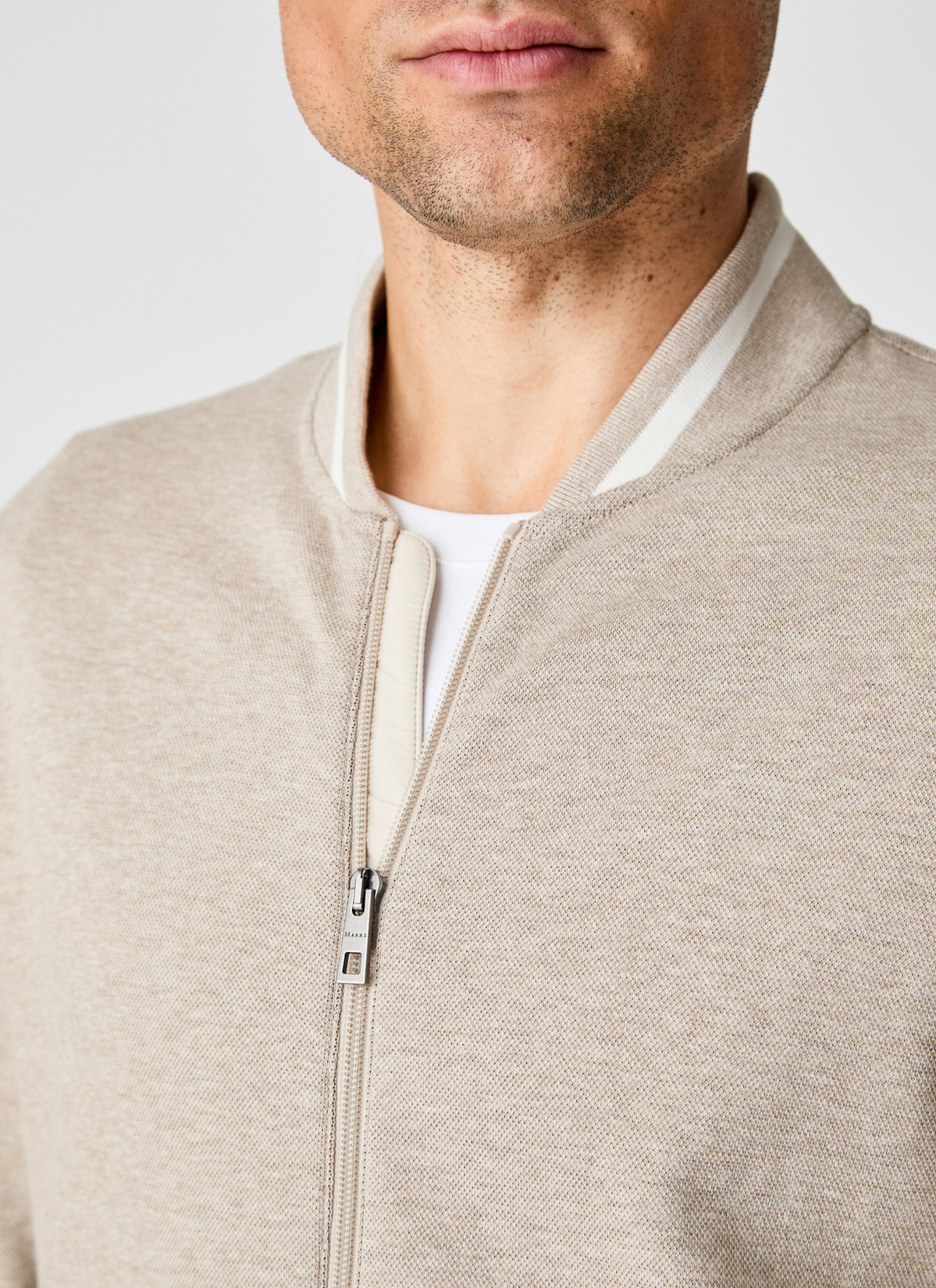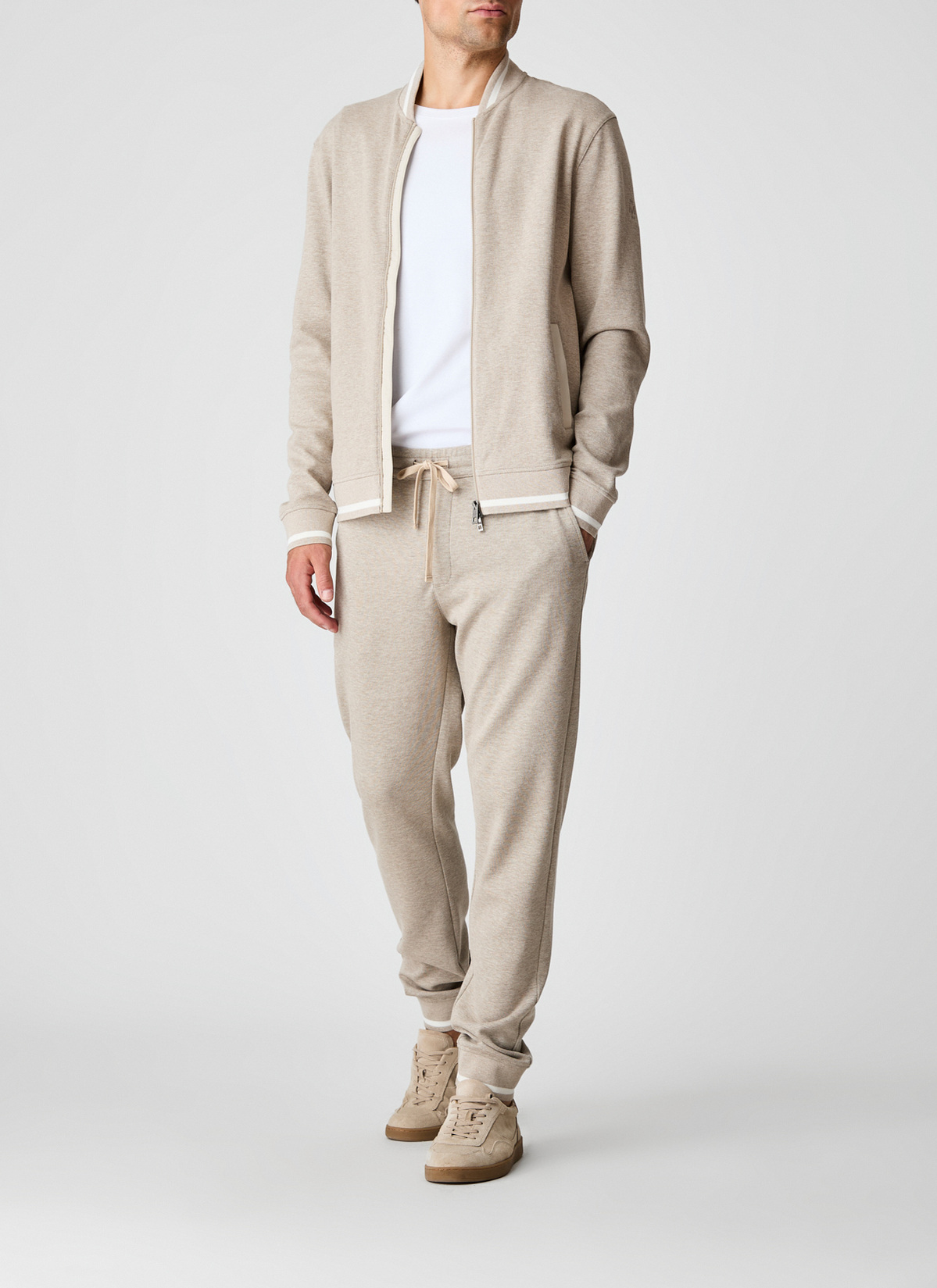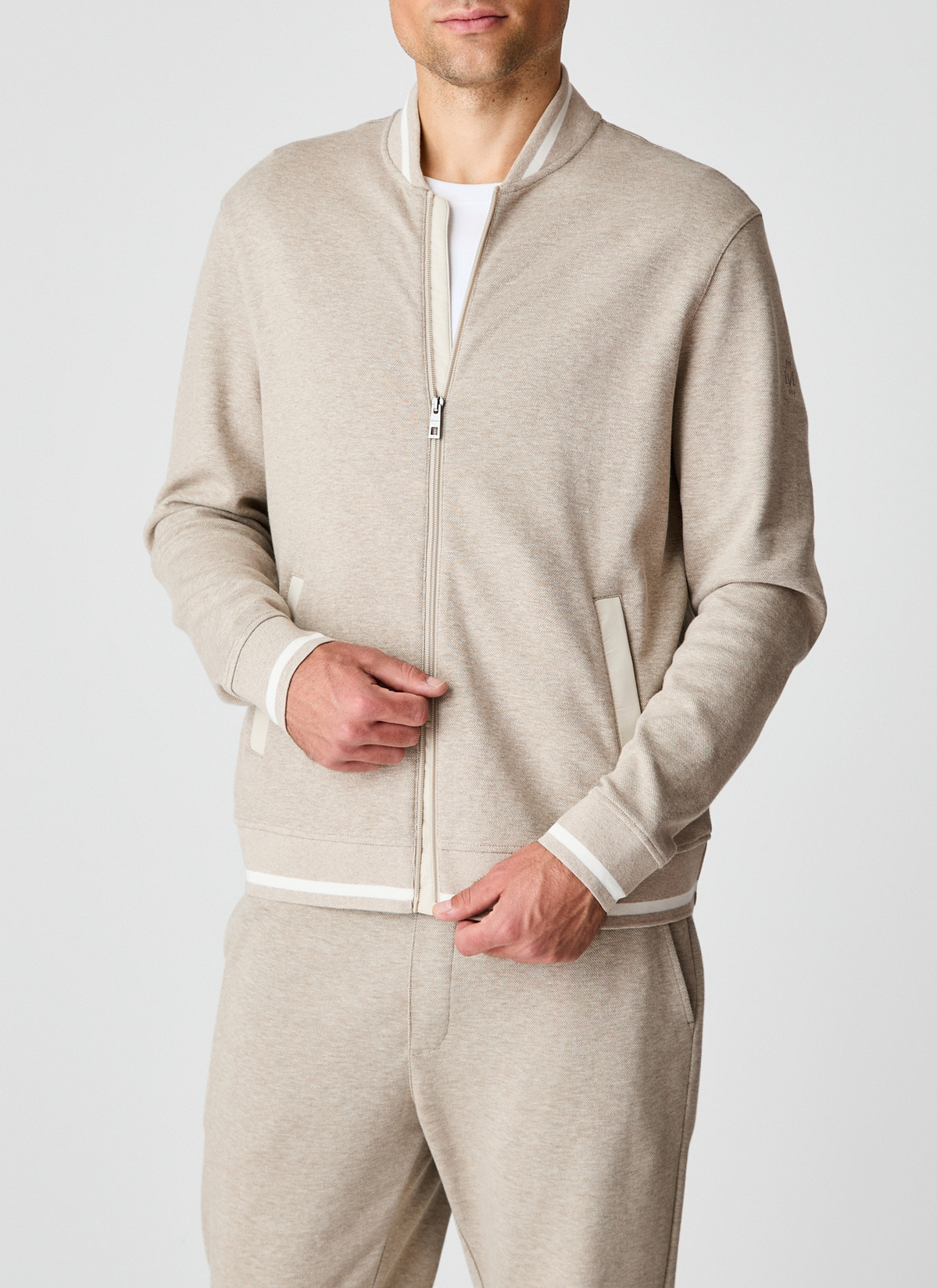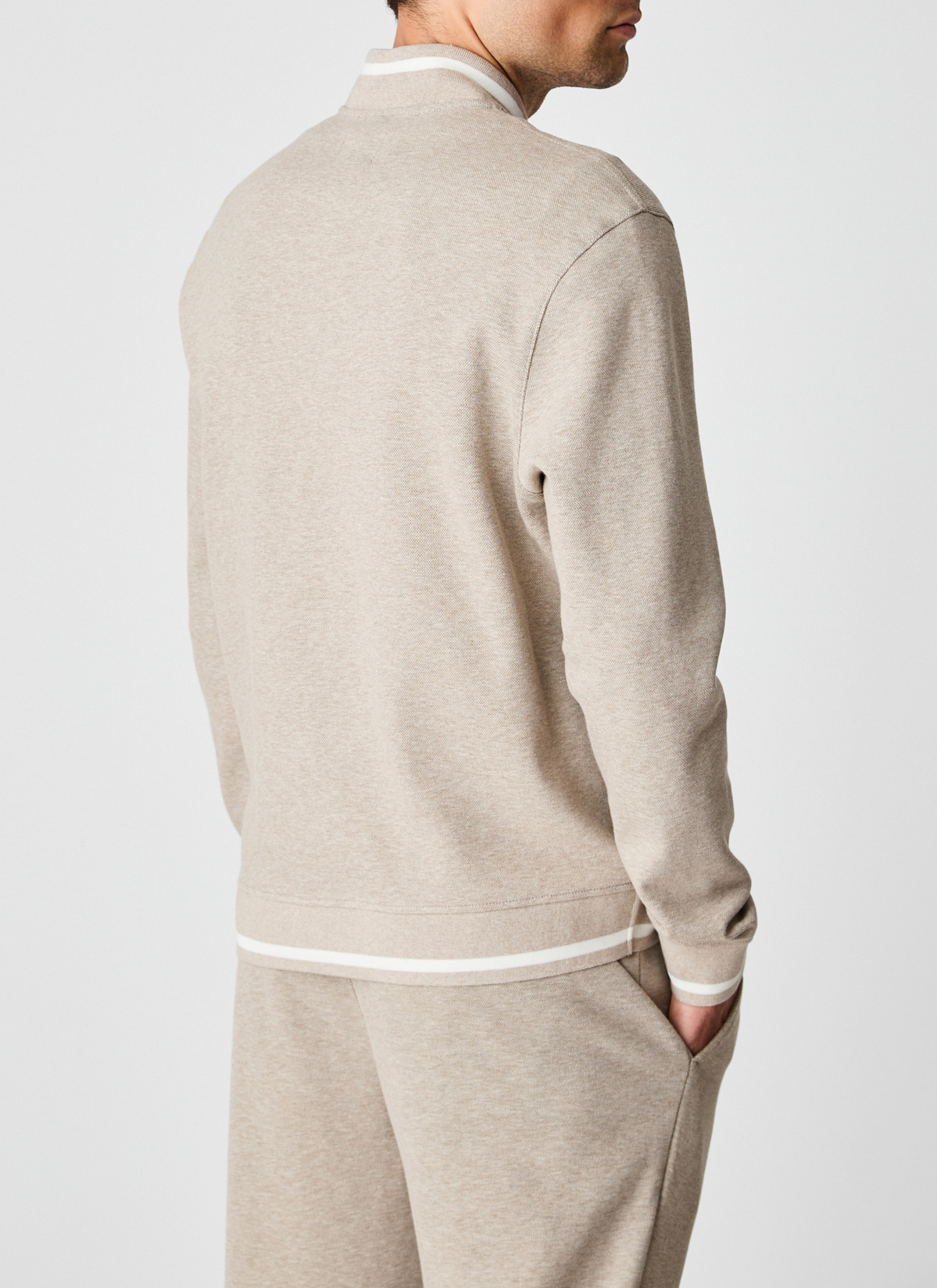 Sportlich, klar und stilvoll zugleich: Diese Herrenstrickjacke im Regular Fit bringt Bewegung in den Alltag und überzeugt mit durchdachten Details. Der Reißverschluss verleiht der Jacke einen sportlichen Charakter und ermöglicht bequemes An- und Ausziehen, während der Stehkragen für eine markante Form sorgt. Streifendetails an Kragen und Saum setzen feine Akzente. Seitliche Eingriffstaschen bieten praktischen Komfort und unterstreichen das entspannte Design. Die weiche Baumwollmischung ist angenehm auf der Haut, atmungsaktiv und pflegeleicht. Kombiniert mit der passenden Hose (Art. Nr. 636901) wirkt der Look besonders modern.