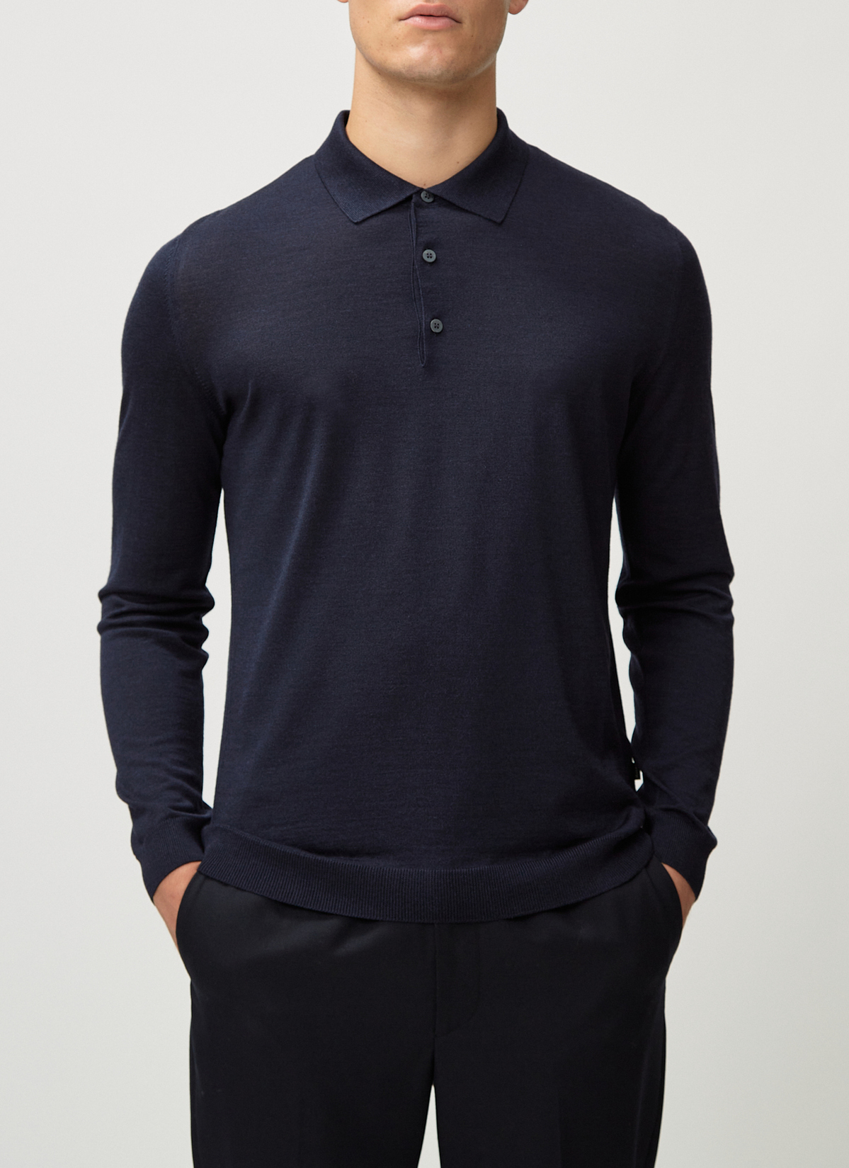 MAERZ Herren Kleidung Polokragenpullover|merino-seide-cashmere | Navy