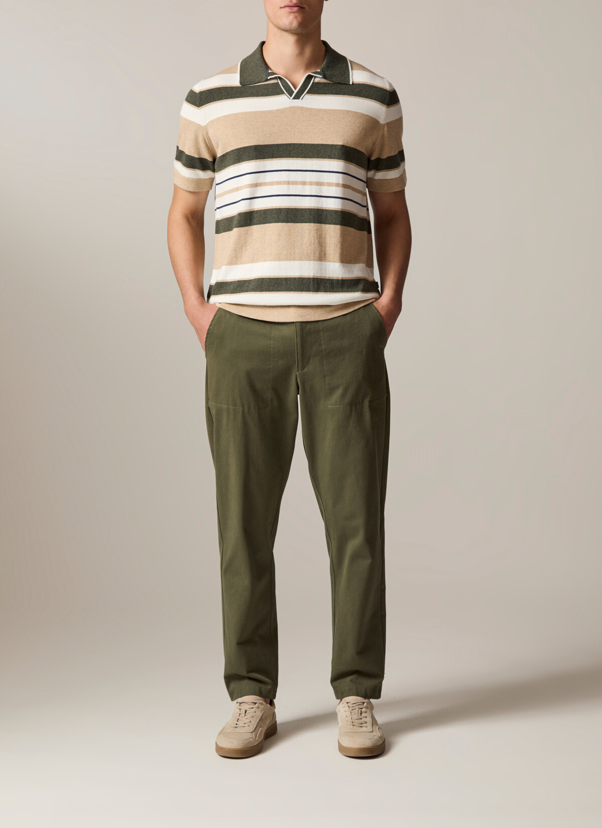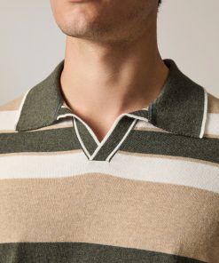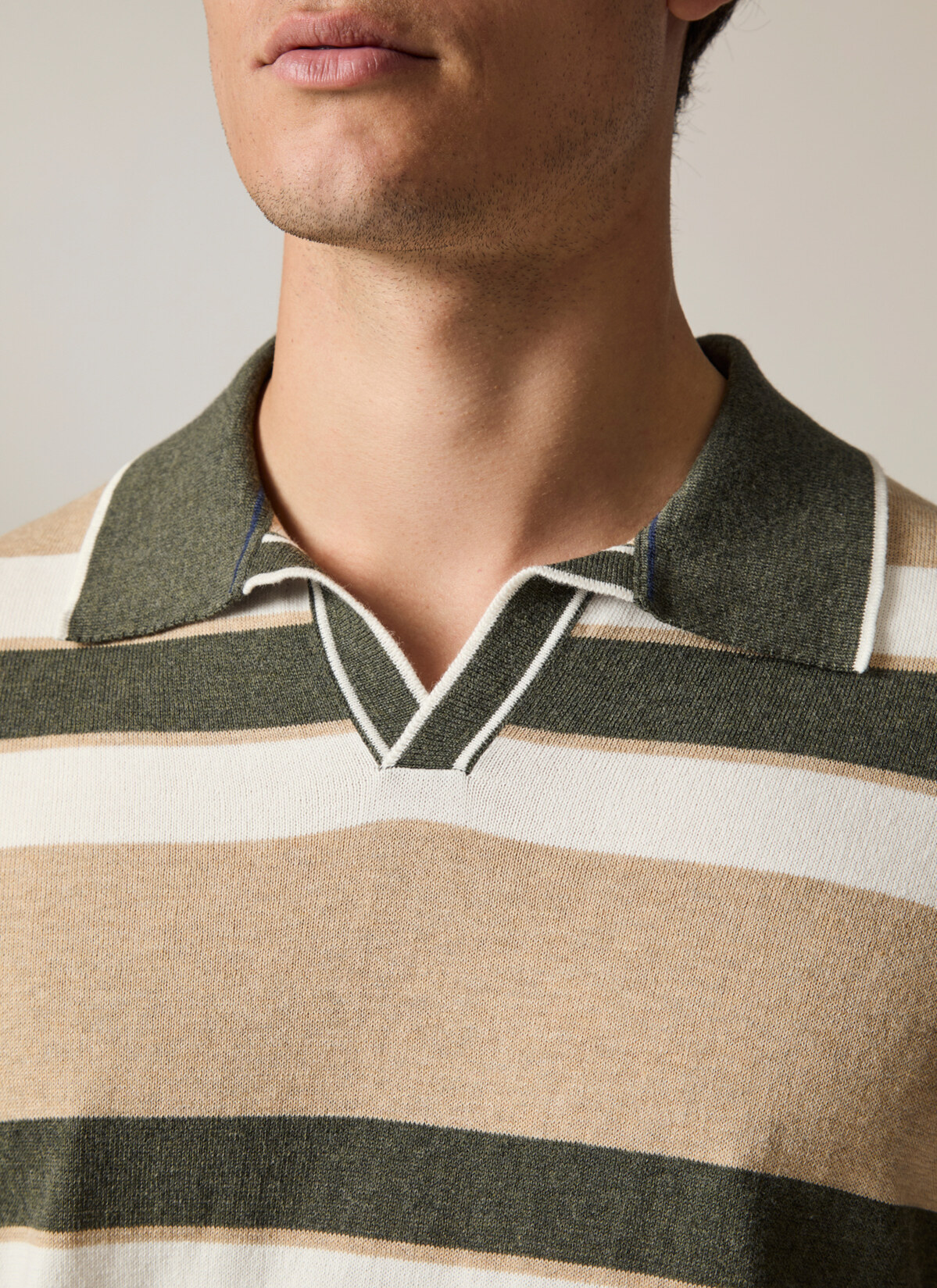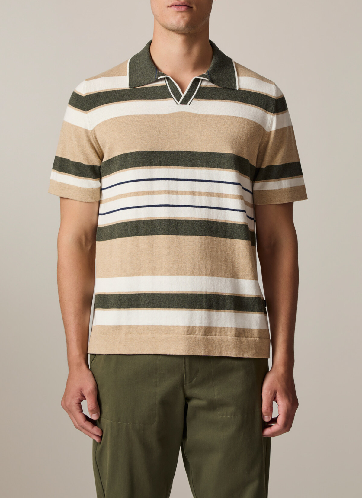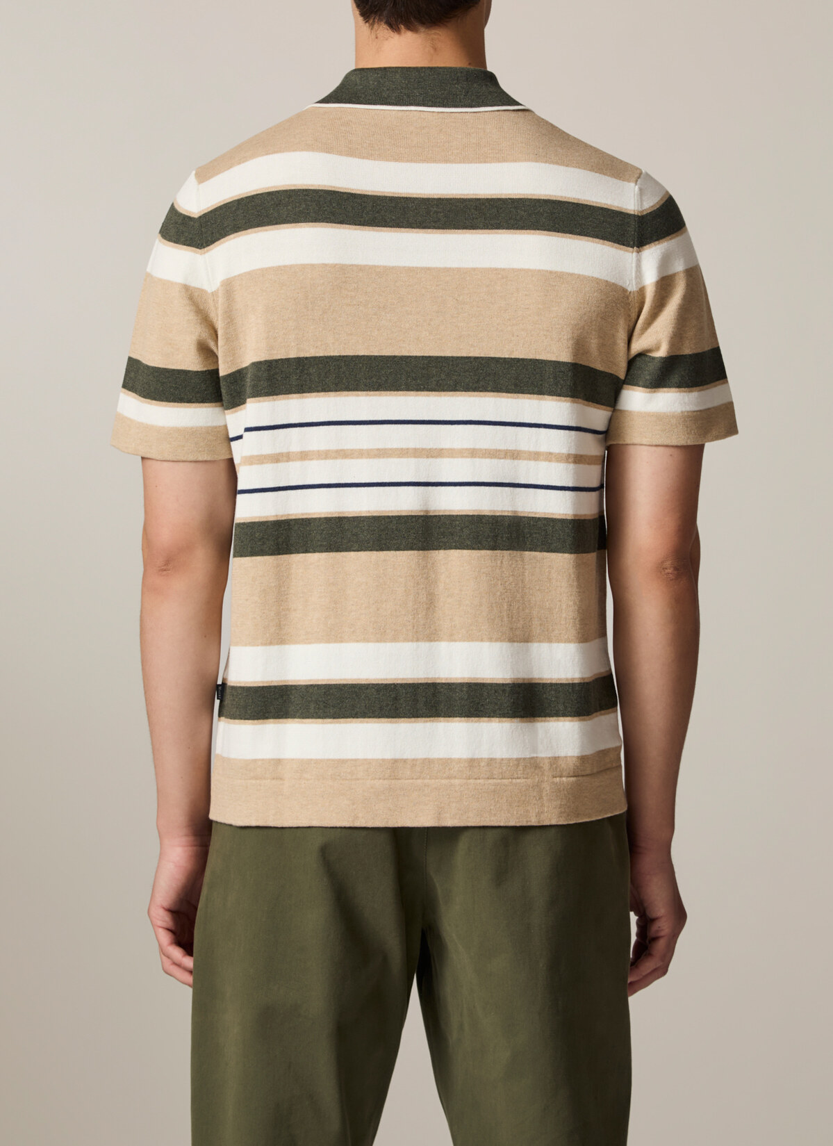 Das Polo zeigt sich im Regular Fit mit dezentem, offenem V-Ausschnitt. Material: Gefertigt aus hochwertiger Baumwolle bietet es eine angenehme Atmungsaktivität und hohen Tragekomfort. Optik: Das Statement Streifenmuster mit farblich abgesetztem Kragen verleiht dem Polo eine moderneAusstrahlung. Haptik: Die Baumwolle fühlt sich weich und angenehm auf der Haut an. Styling-Tipp: Kombiniert mit einer schlichten Chino oder Jeans entsteht ein klassischer, dennoch zeitgemäßer Look.