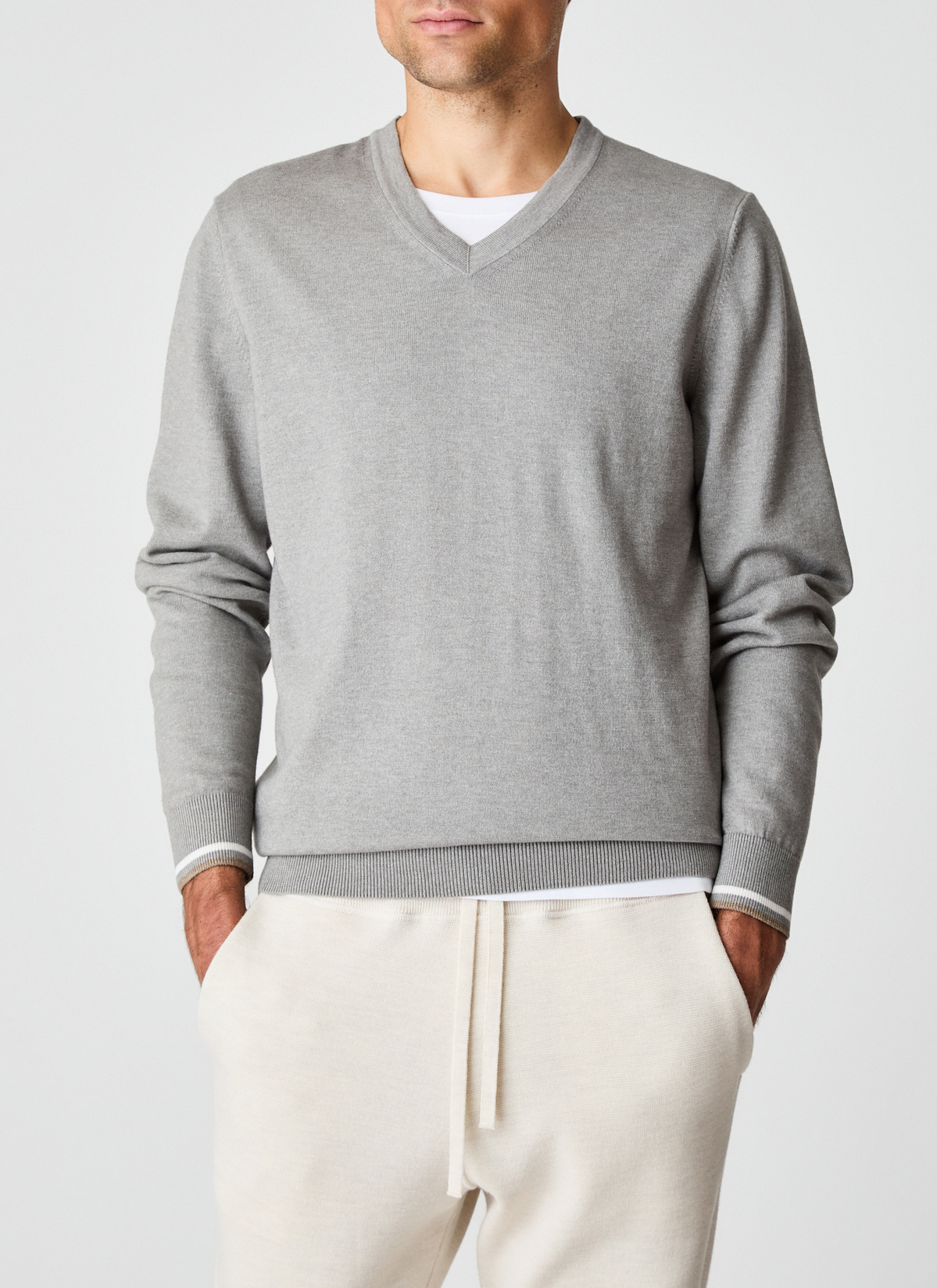 MAERZ Herren Kleidung Pullover V-ausschnitt|wolle-biobaumwolle-mischung | Mercury Grey