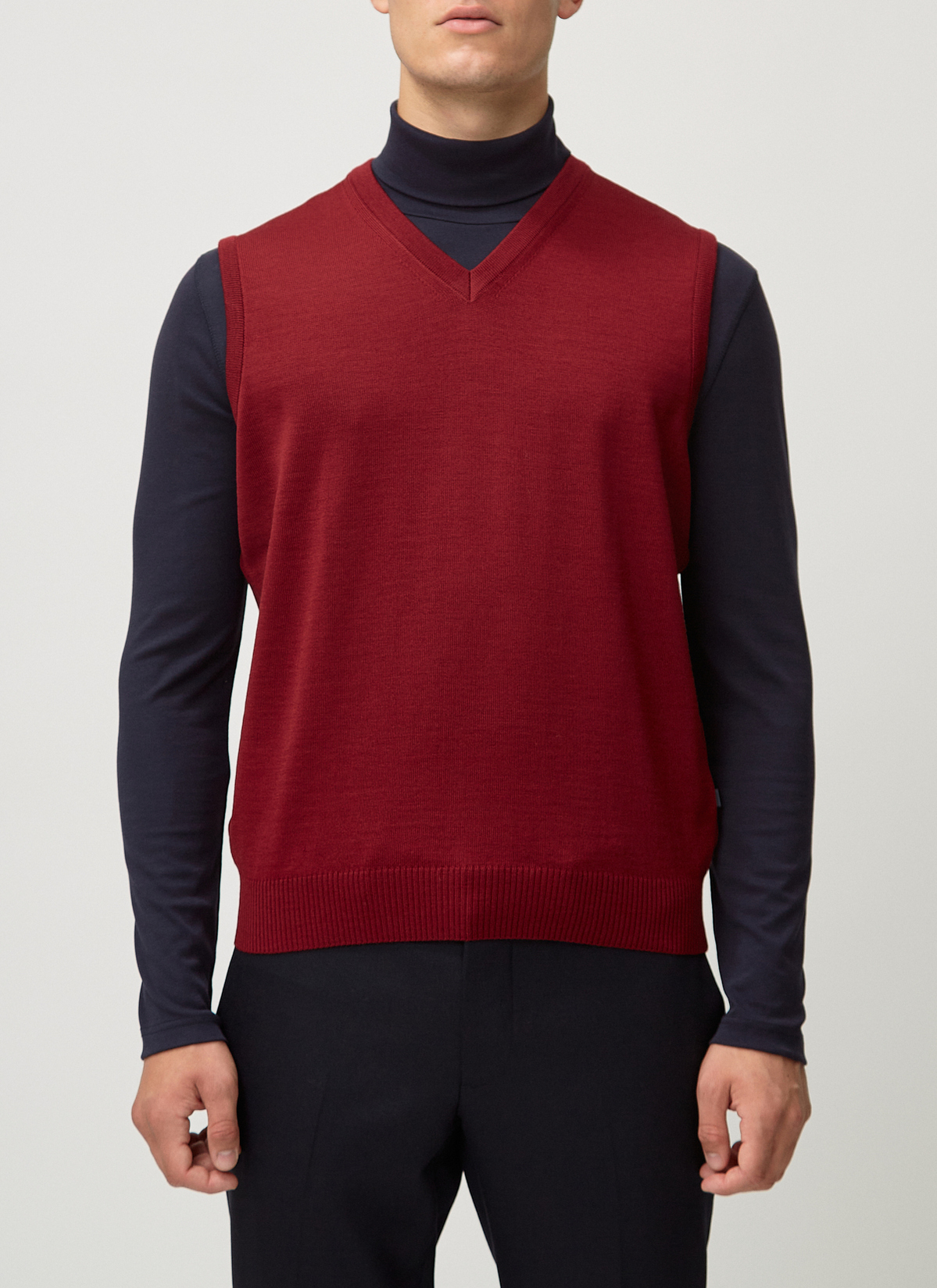 Cleanes Design trifft auf hochwertige Merinowolle! Pullunder mit V-Ausschnitt im Classic Fit – ein Klassiker für jeden Tag. Material: Merinowolle hat einen hohen Tragekomfort, ist feuchtigkeitsregulierend, geruchsneutral und besitzt eine wärmende sowie temperaturausgleichende Funktion. Haptik: cleanes, klassisches Maschenbild mit weichem Wollgriff. Hochwertige Verarbeitung mit handgekettelten Nähten und elastischen Bündchen. Tragegefühl: leicht und angenehm wärmend.