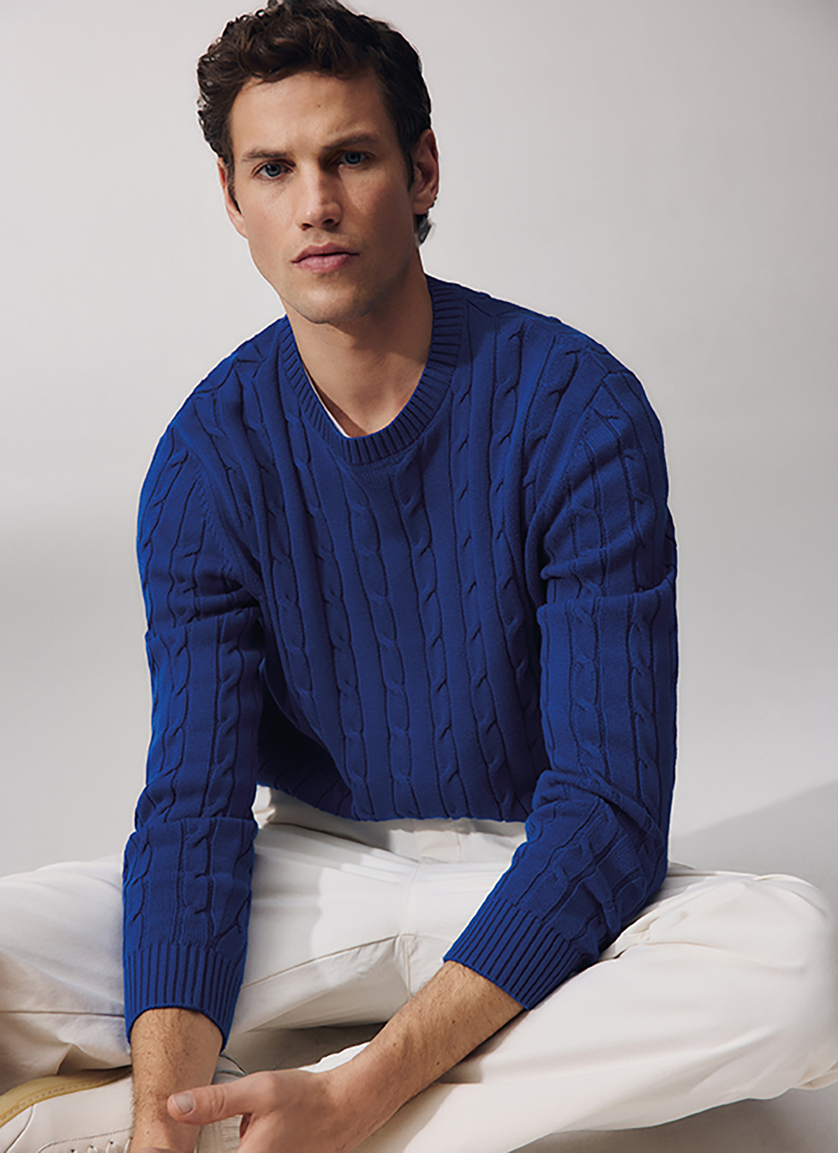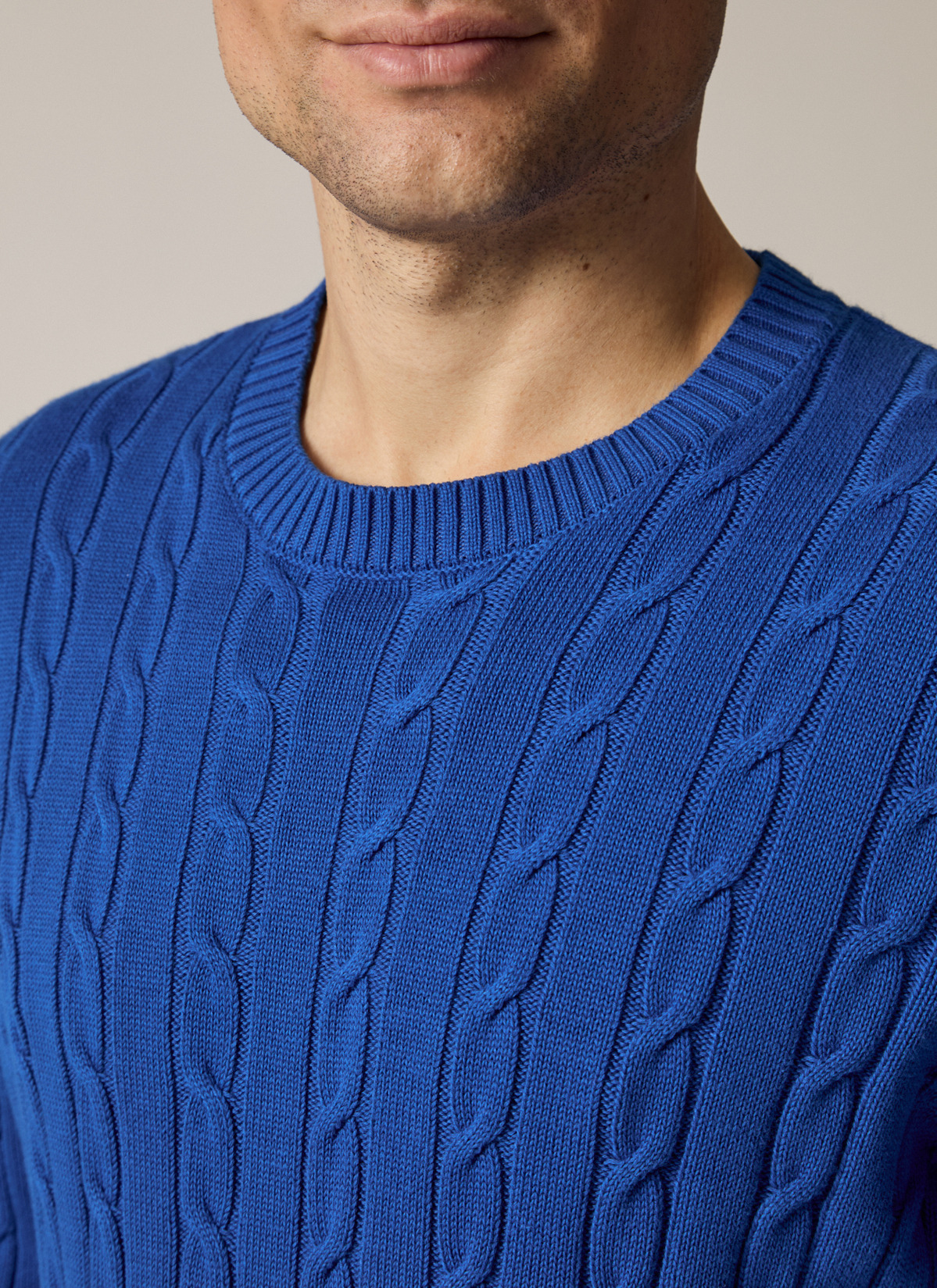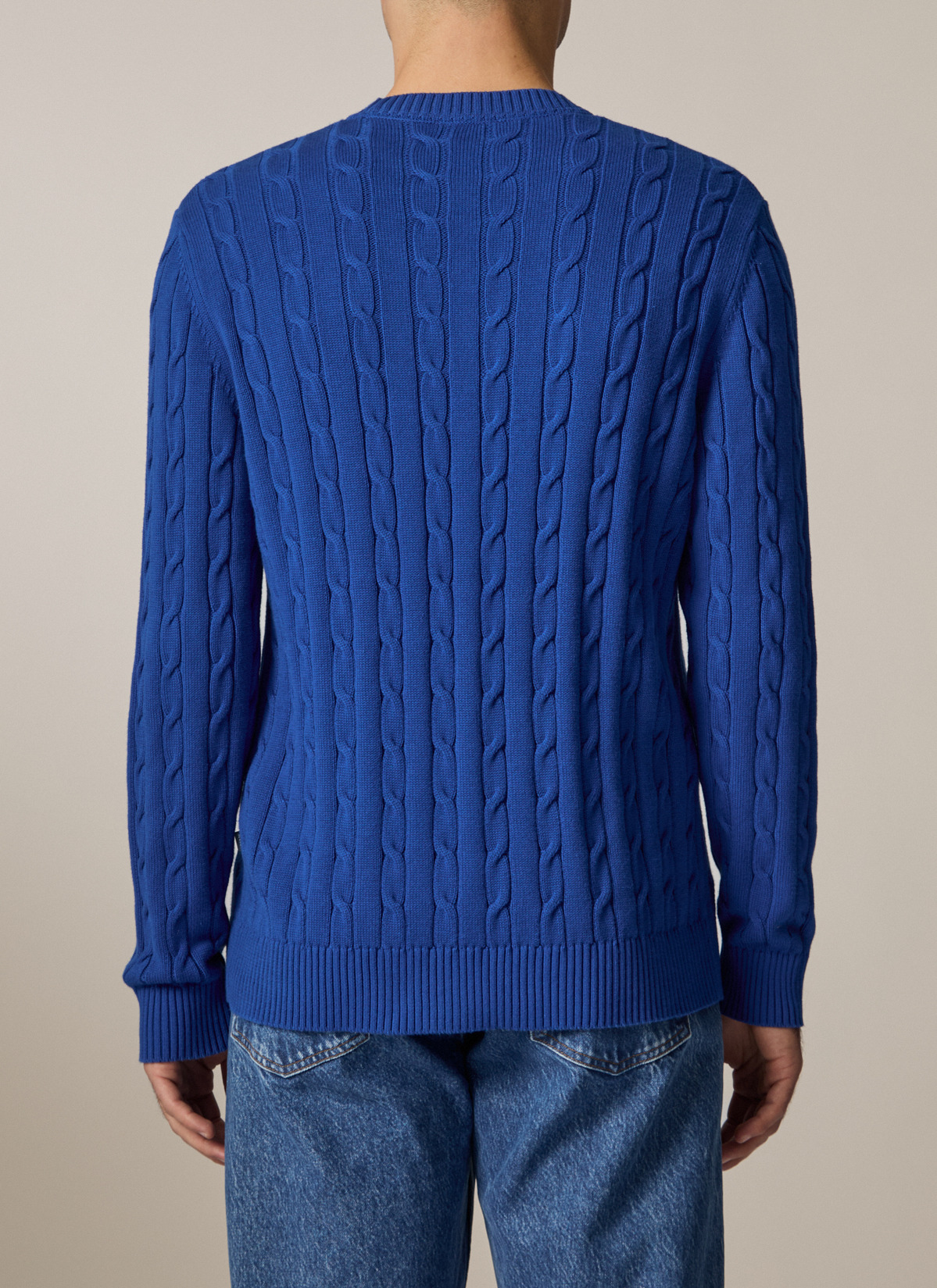 Der Pullover zeigt sich im Regular Fit mit Rundhalsausschnitt. Das Zopfstrickmuster verleiht dem Pullover eine markante Struktur und einen klassischen Charakter. Material: gefertigt aus Baumwolle ist der Pullover besonders pflegeleicht und atmungsaktiv. Haptik: kompakt und weich im Griff. Styling-Tipp: für einen casual Look einfach mit einer Lieblingsjeans kombinieren.