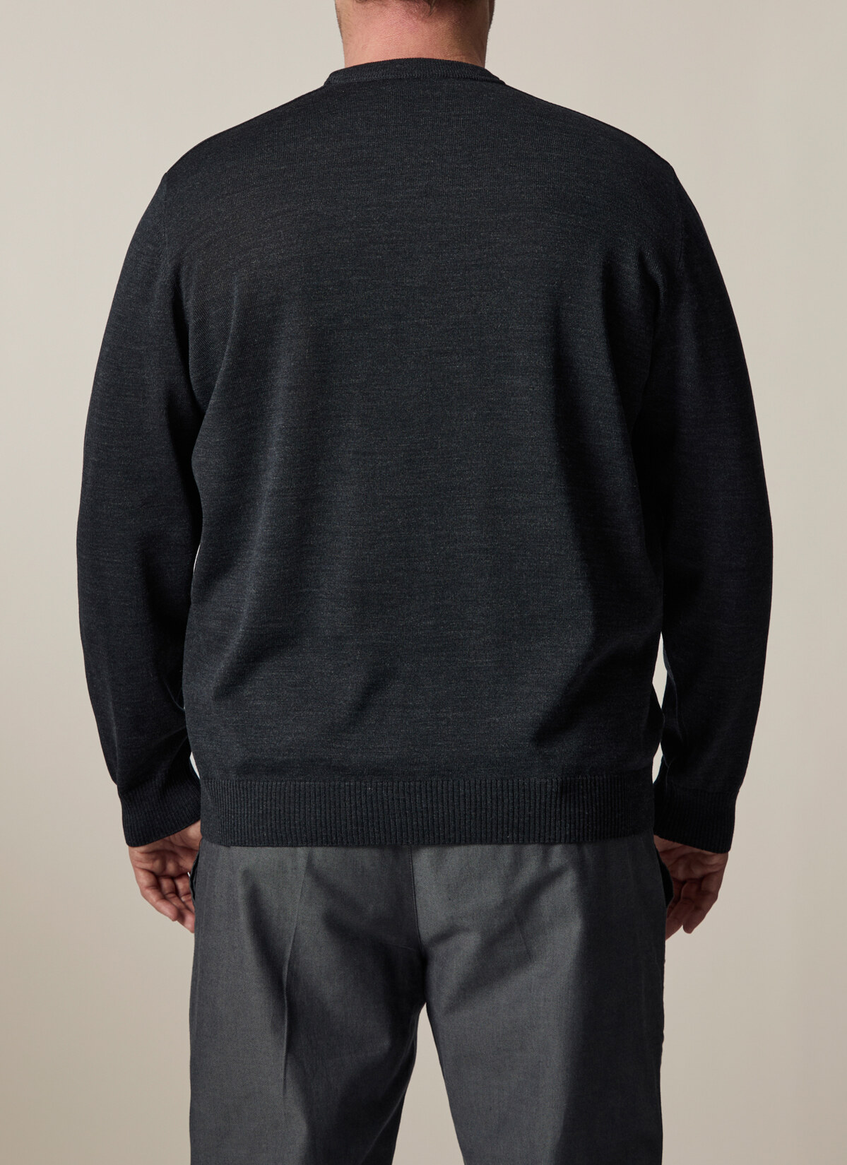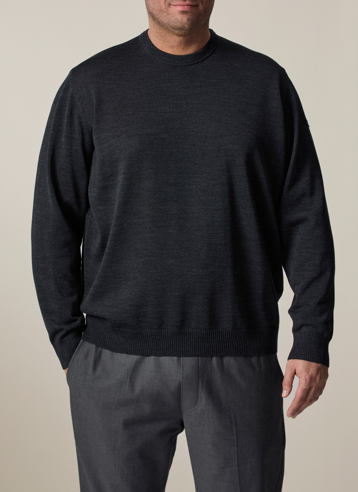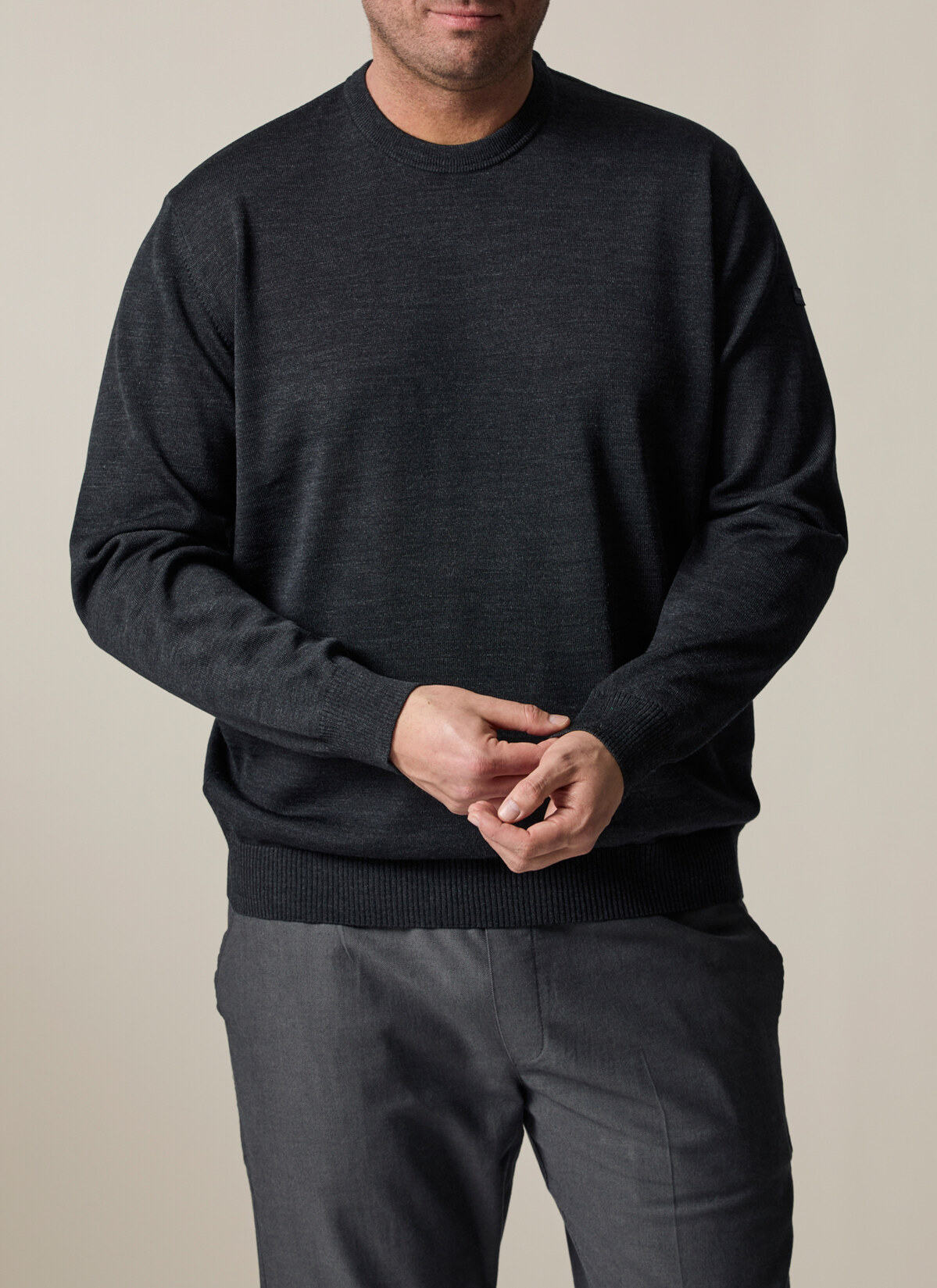 Cleanes Design trifft auf hochwertige Merinowolle! Rundhalspullover in großer Größe – ein Klassiker für jeden Tag. Material: Merinowolle hat einen hohen Tragekomfort, ist feuchtigkeitsregulierend, geruchsneutral und besitzt eine wärmende sowie temperaturausgleichende Funktion. Haptik: cleanes, klassisches Maschenbild mit weichem Wollgriff. Hochwertige Verarbeitung mit handgekettelten Nähten und elastischen Bündchen. Tragegefühl: leicht und angenehm wärmend.