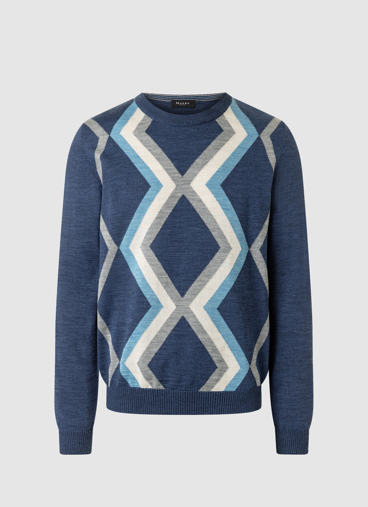 MAERZ Herren Kleidung Rundhalspullover|100% Merinowolle | Deep Sea