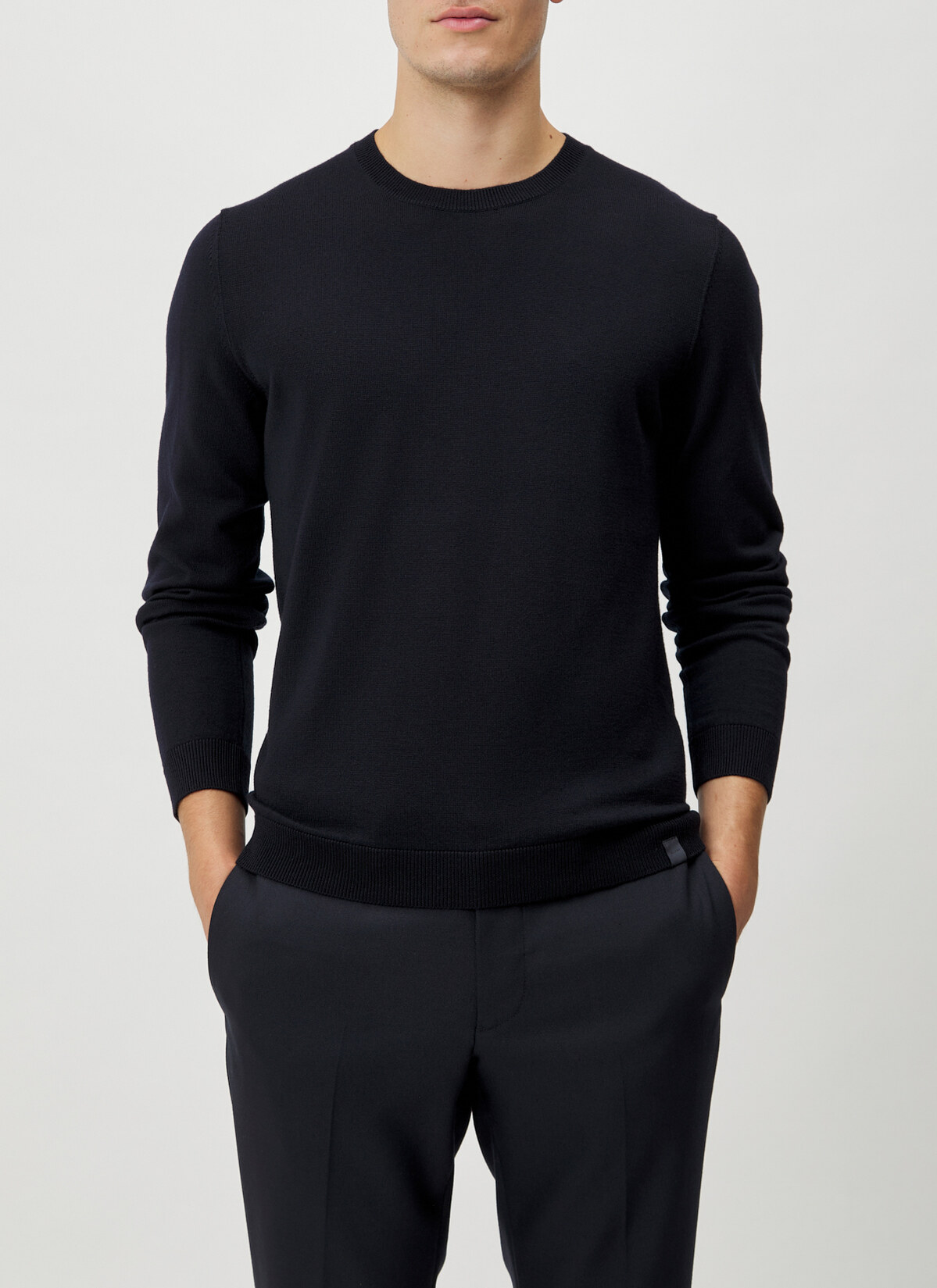 MAERZ Herren Kleidung Rundhalspullover|100% Merinowolle | Navy