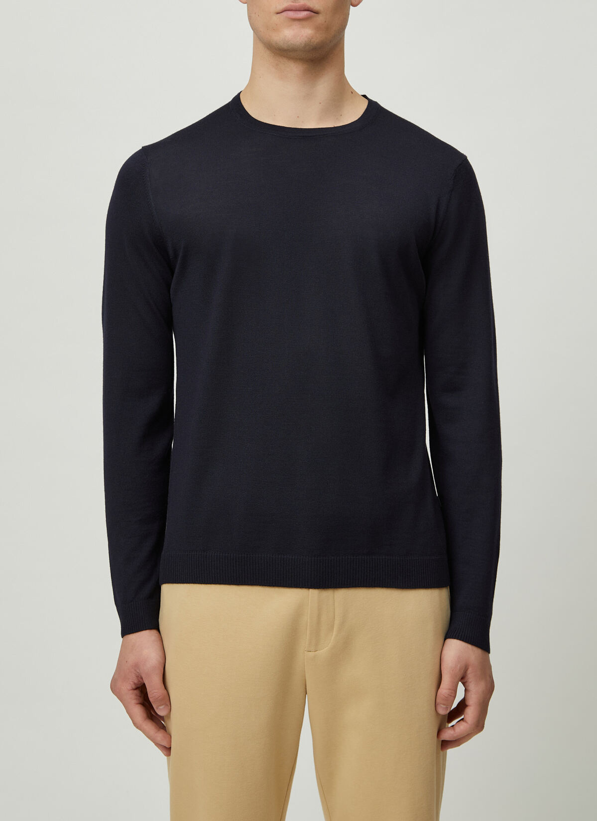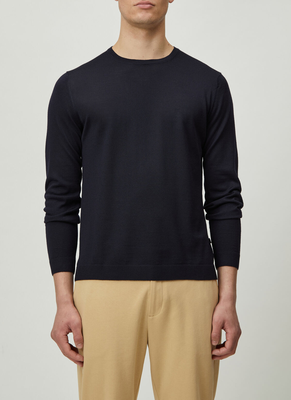 MAERZ Herren Kleidung Rundhalspullover|100% Merinowolle | Navy