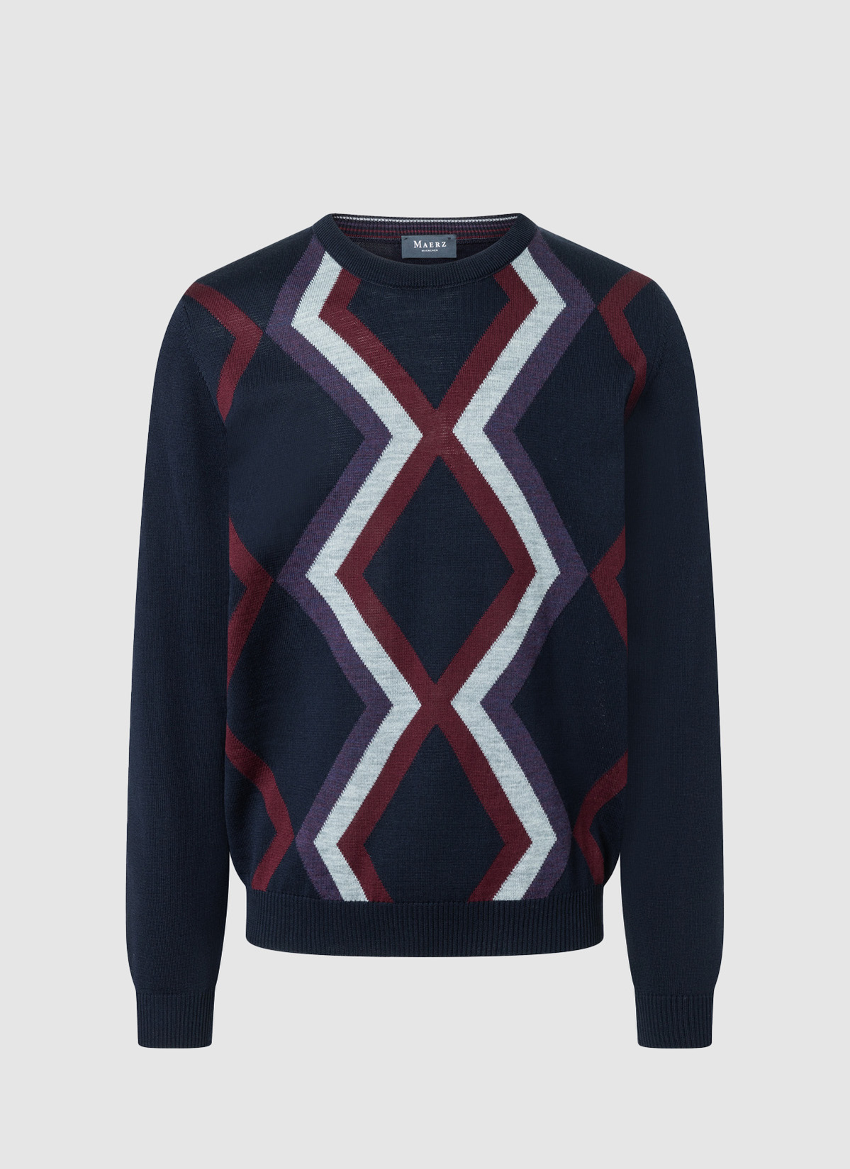 MAERZ Herren Kleidung Rundhalspullover|100% Merinowolle | Navy