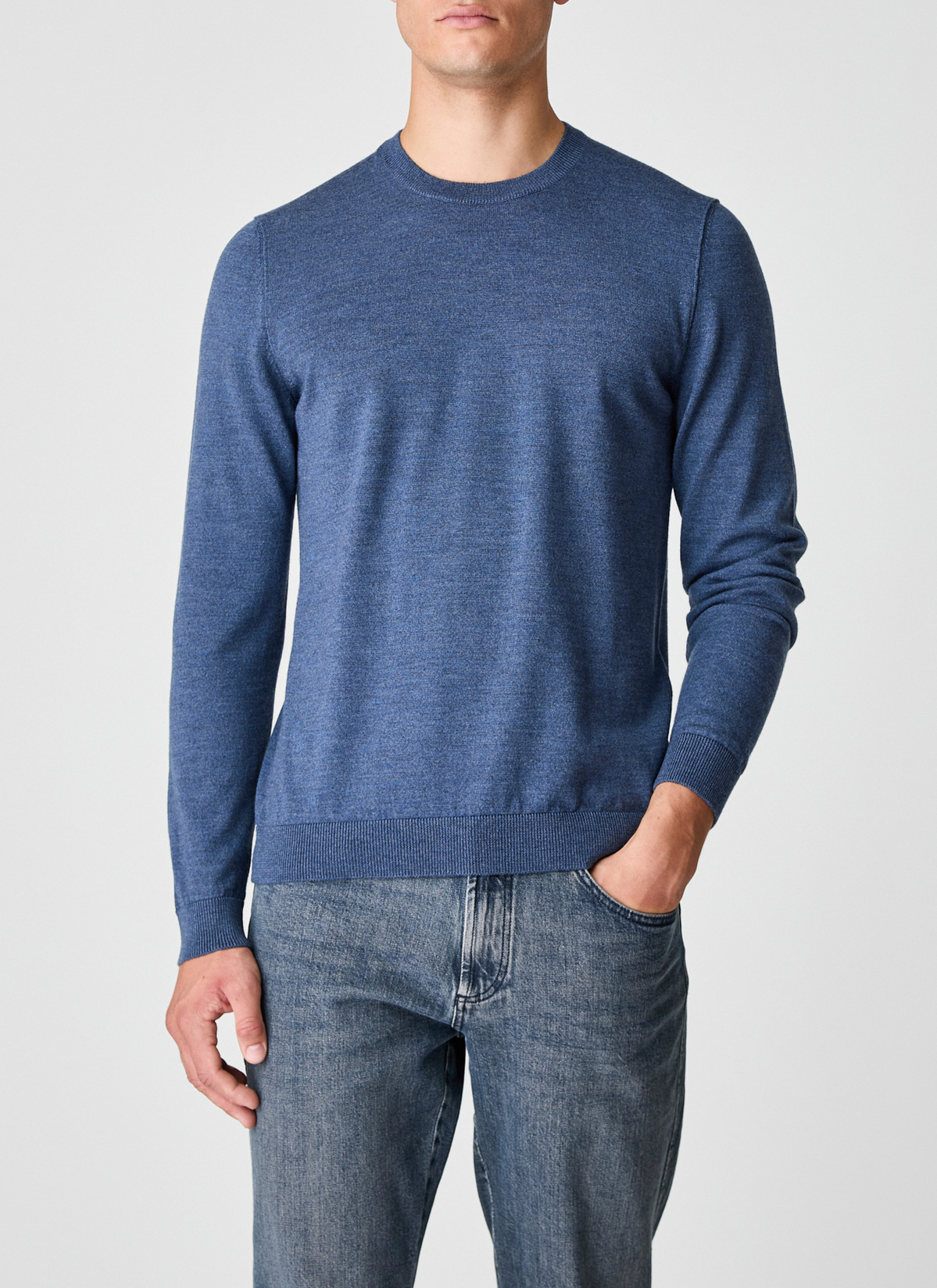 Sportiv und vielseitig: moderner Pullover mit Rundhalsausschnitt im Modern Fit. Besonders: die nachaußengedrehte Naht und die aufwendigen Strickdetails an Schulter und Kragen. Material: fein und weich, aber enorm strapazierfähig, mit einem festen und gleichzeitig elastischen Griff. Haptik: cleanes klassisches Maschenbild mit weichem Wollgriff. Hochwertige Verarbeitung mit handgekettelten Nähten und elastischen Bündchen.