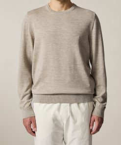 Der Pullover im Regular Fit zeigt sich mit Rundhalsausschnitt und Rippendetails an Saum und Kragen. Der Pullover überzeugt durch seinen klassischen, sportlichen Look. Material: die Materialmischung aus Merinowolle und Leinen kombiniert die weiche, temperaturregulierende Eigenschaft der Merinowolle mit der leichten, atmungsaktiven Textur von Leinen, was für einen hohen Tragekomfort sorgt. Haptik: weich und leicht griffig. Styling-Tipp: für einen eleganten Look mit einer farblich passenden Stoffhose oder alltagstauglich zu Jeans kombinieren.
