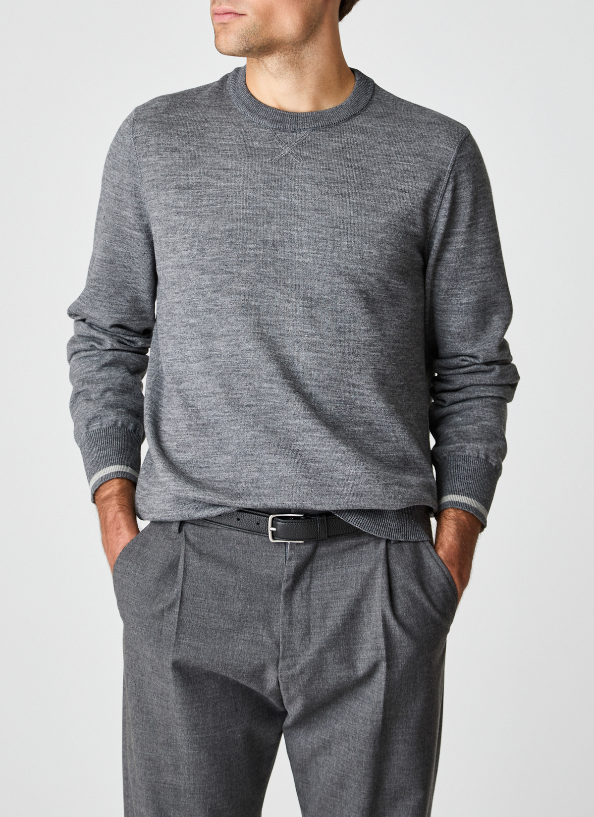 Der Herrenpullover präsentiert sich in klassischem Design mit Rundhalsausschnitt und einem bequemen Classic Fit, der eine stilvolle Silhouette bietet und dennoch angenehm locker sitzt. Die zeitlose Optik macht ihn zum vielseitigen Begleiter für Alltag und Freizeit. Das Besondere liegt im Material: Die innovative IQ Wool besteht ausWollfasern, die von weicher Baumwolle umhüllt sind. Dadurch entsteht ein Material, das zuverlässig wärmt, atmungsaktiv ist und sich zugleich sanft auf der Haut anfühlt. Ideal für Männer, die Wert auf stilvolle Langlebigkeit und spürbaren Komfort legen.