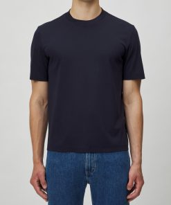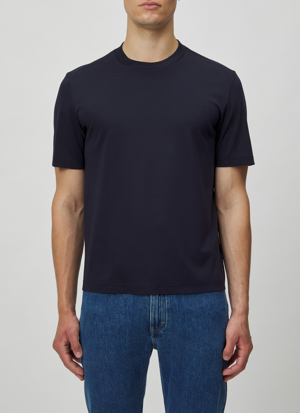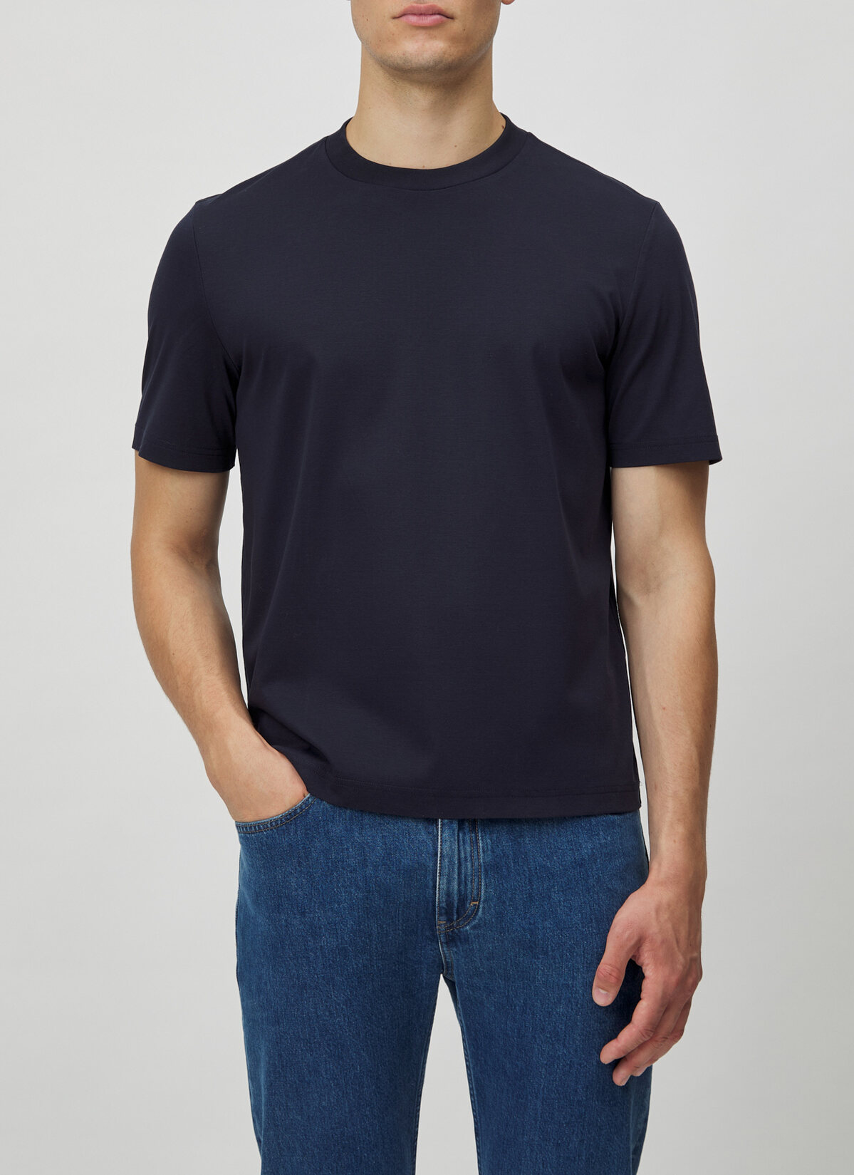 Kurzarm Rundhalsshirt aus 100% Baumwolle. Das Basic überzeugt durch einen cleanen Schnitt und ist ein Must-have in jedem Kleiderschrank. Material: Die Baumwolle ist kühl und weich im Griff. Verarbeitung: die verarbeitete Baumwolle ist merzerisiert. Dadurch entsteht die seidige, leicht glänzende Oberfläche. Das Shirt erfreut mit hoher Formbeständigkeit.