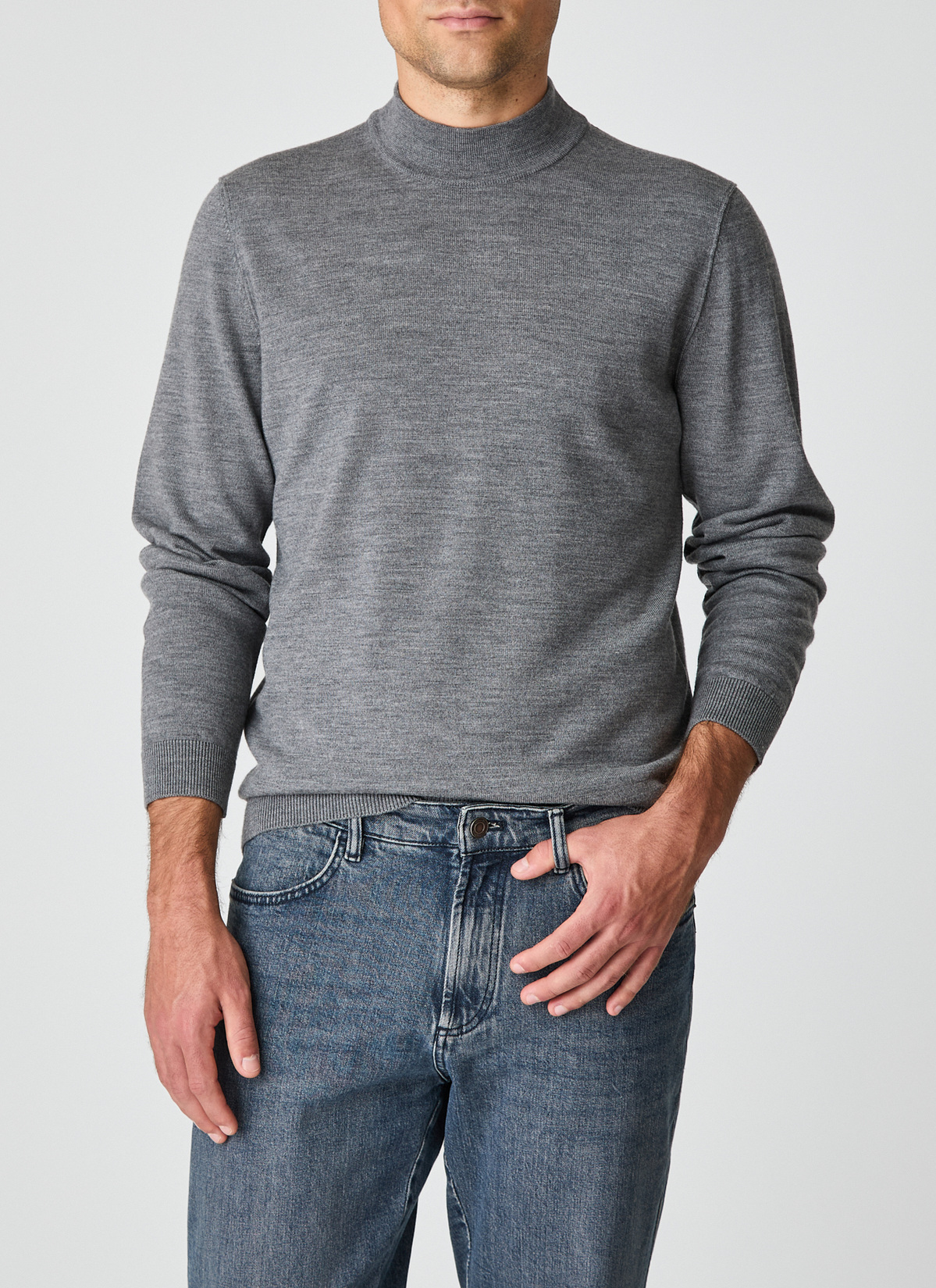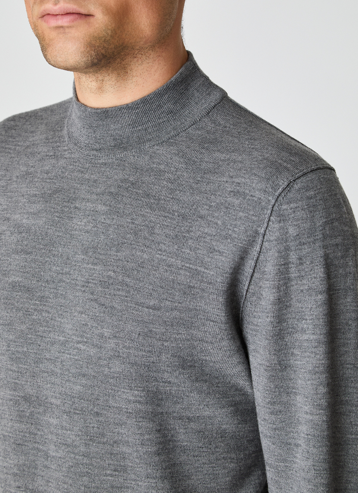 Sportiv und vielseitig: moderner Pullover mit Stehkragen im Modern Fit. Besonders: die nachaußengedrehte Naht und die aufwendigen Strickdetails an Schulter und Kragen. Material: fein und weich, aber enorm strapazierfähig, mit einem festen und gleichzeitig elastischen Griff. Haptik: cleanes klassisches Maschenbild mit weichem Wollgriff. Hochwertige Verarbeitung mit handgekettelten Nähten und elastischen Bündchen.