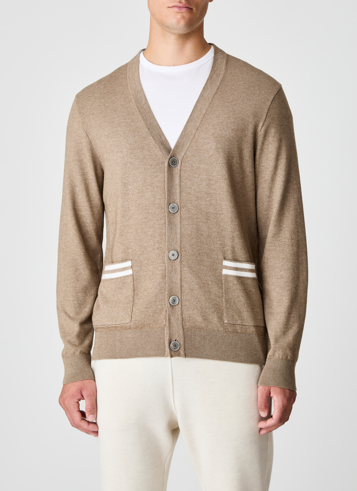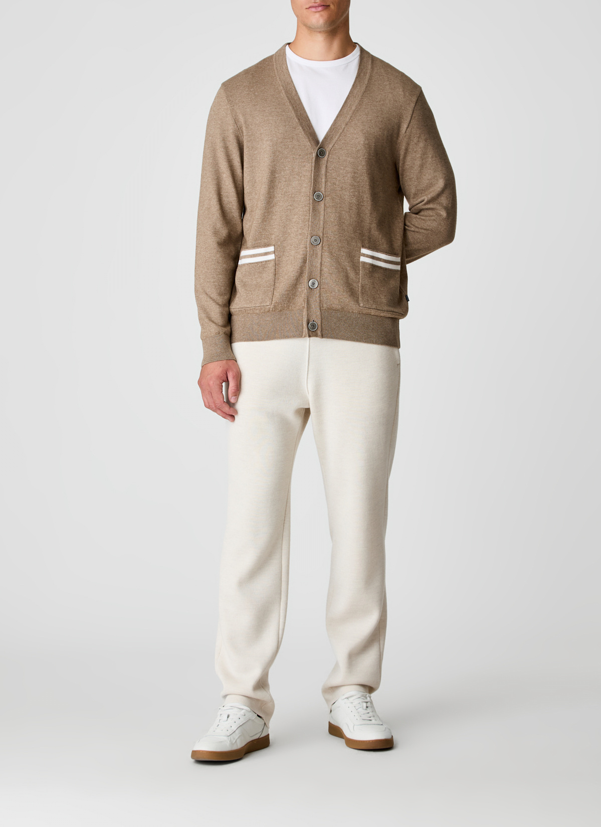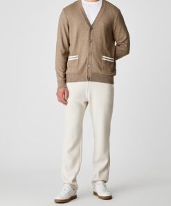 Ein Klassiker neu interpretiert: Diese Herrenstrickjacke vereint feines Design mit natürlichem Tragekomfort. Die Kombination aus durchgehender Knopfleiste und V-Ausschnitt macht sie zum vielseitigen Begleiter, ob offen getragen oder geschlossen. Zwei aufgesetzte Taschen mit dezenten Streifendetails setzen geschmackvolle Akzente, ohne sich aufzudrängen. Gefertigt aus einer ausgewogenen Mischung aus Bio-Baumwolle undSchurwolle bietet die Jacke eine besonders weiche Haptik, ist gleichzeitig formstabil, atmungsaktiv und temperaturregulierend. Für alle, die zeitlose Mode mit hochwertigen Naturmaterialien und spürbarer Qualität schätzen.