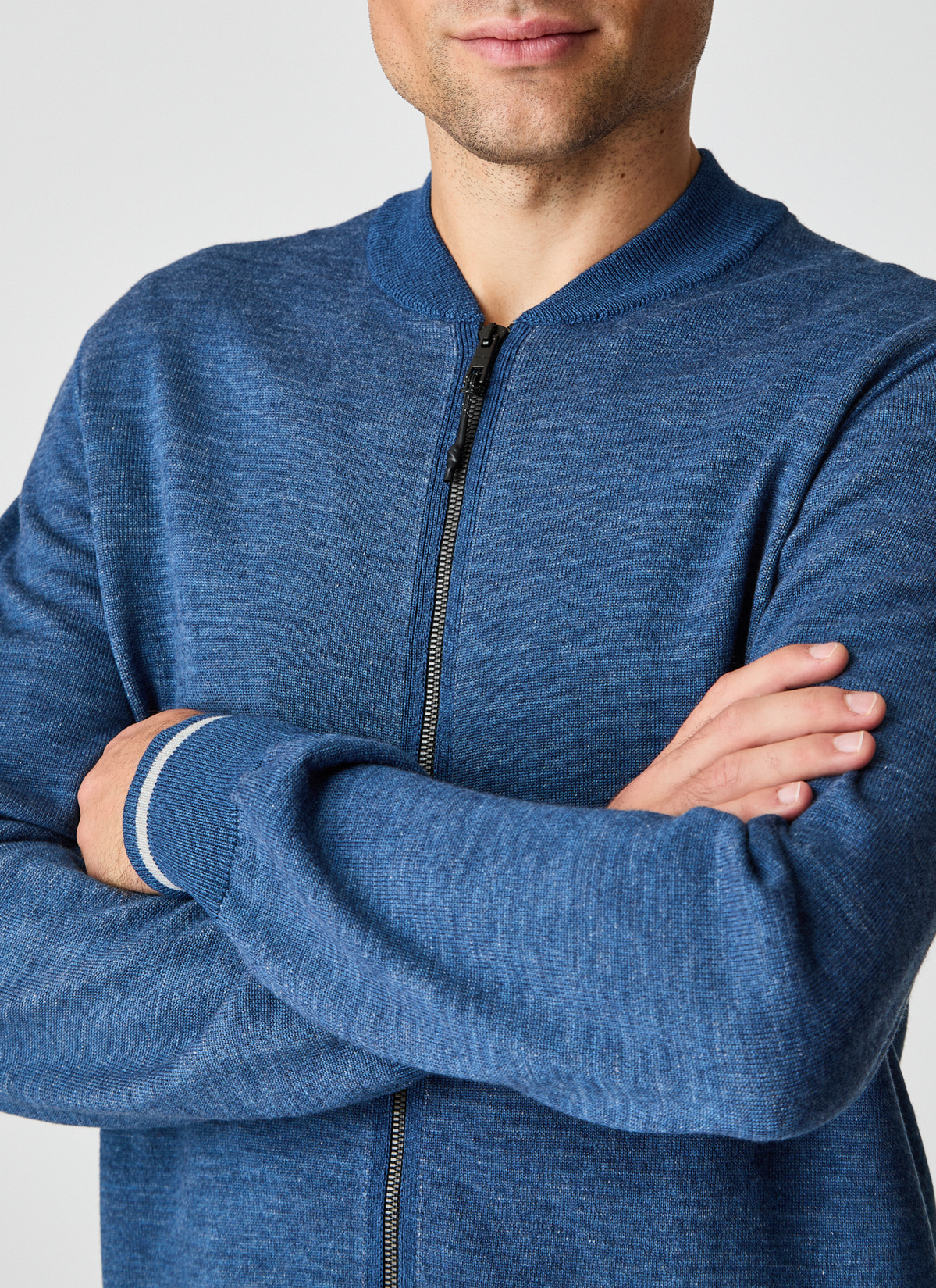 Diese Strickjacke für Herren kombiniert klassischen Stil mit durchdachten Details und einem sportlich-eleganten Look. Der bequeme Classic Fit, der Reißverschluss und der Stehkragen sorgen für eine moderne, dennoch zeitlose Silhouette. Dezente Streifendetails am Ärmelsaum setzen stilvolle Akzente. Das Besondere liegt im Material: Die innovative IQ Wool besteht ausWollfasern, die von weicher Baumwolle umhüllt sind. Dadurch entsteht ein Material, das zuverlässig wärmt, atmungsaktiv ist und sich zugleich sanft auf der Haut anfühlt. Perfekt für Männer, die Wert auf Qualität, Funktion und einen gepflegten Auftritt legen.