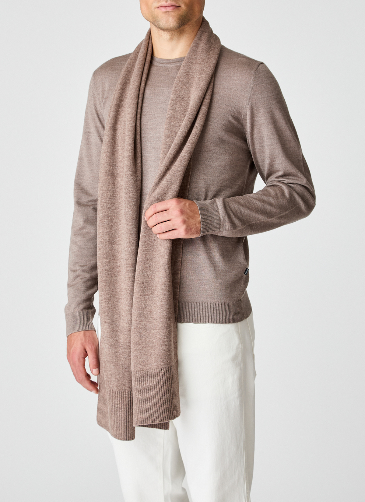 Moderner Strickschal – für coole Winter-Looks! Wunderbar weich und wärmen zugleich verleihen sie Deinem Outfit den letzten Schliff. Ein zeitloses Essential für den modischen Mann! Material: die hochwertige Geelong-Wolle ist mulesing-frei und wird in Italien zum Premiumgarn versponnen.Haptik: klassisches Maschenbild mit leichtem und softem Wollgriff. Tragegefühl: leicht und angenehm wärmend. Hochwertige Verarbeitung mit handgekettelten Nähten und elastischen Bündchen. Styling-Tipp: kombiniert mit der passende Mütze (Art.-Nr. 816200) wirkt der Look besonders harmonisch.