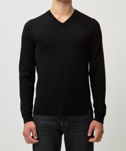 MAERZ Herren Kleidung V-pullover|100% Merinowolle | Black