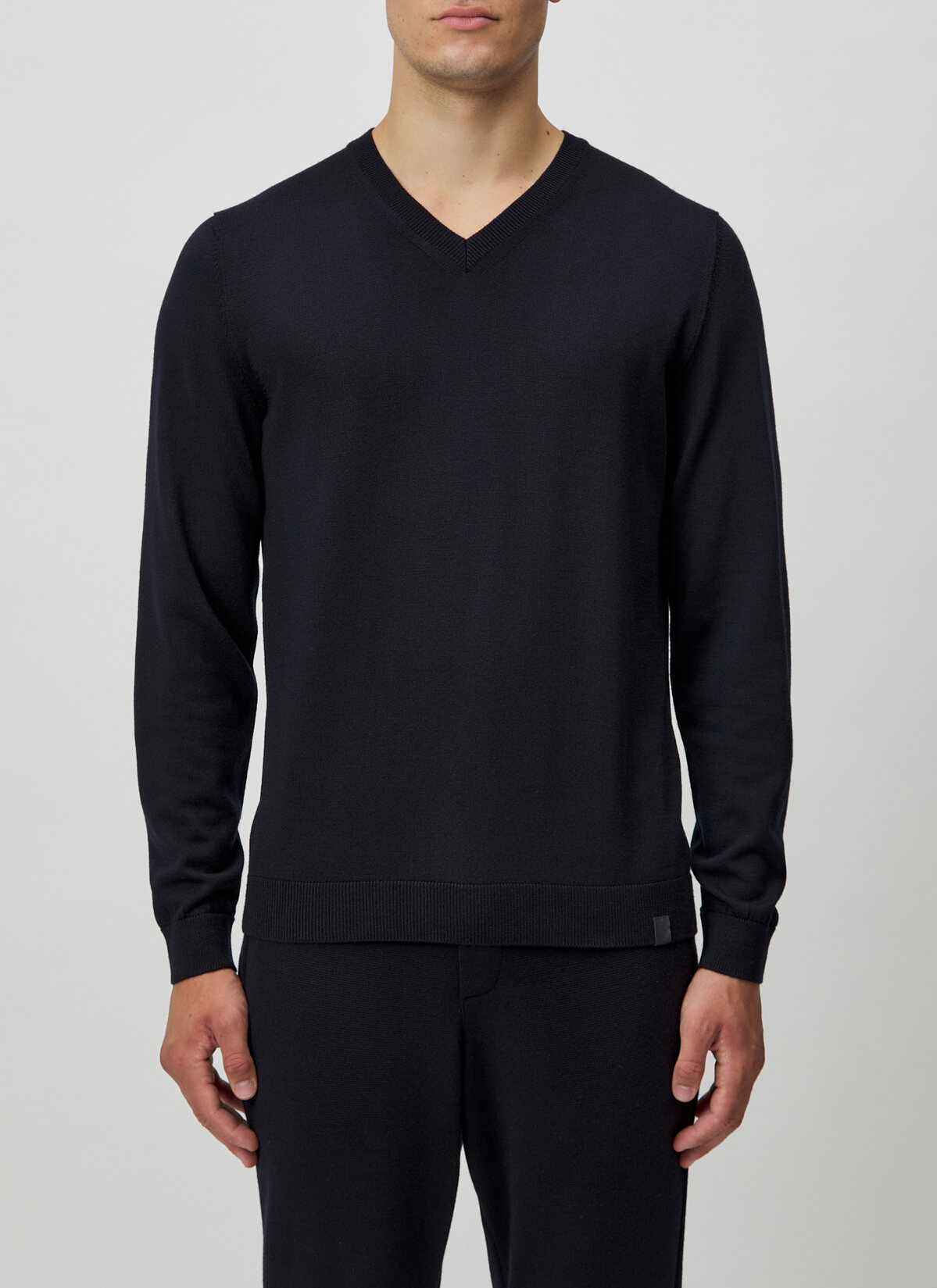 MAERZ Herren Kleidung V-pullover|100% Merinowolle | Navy