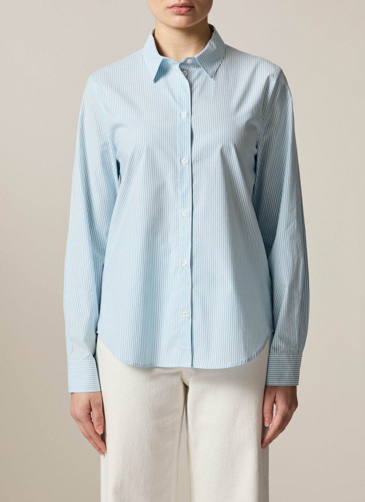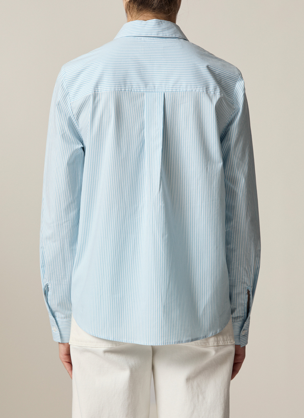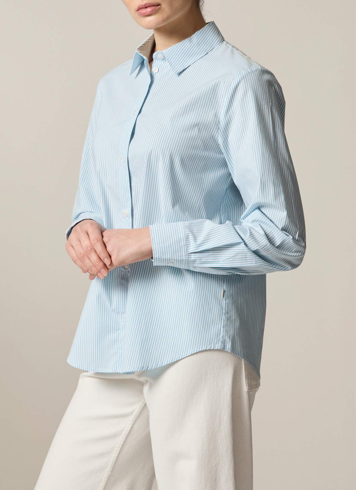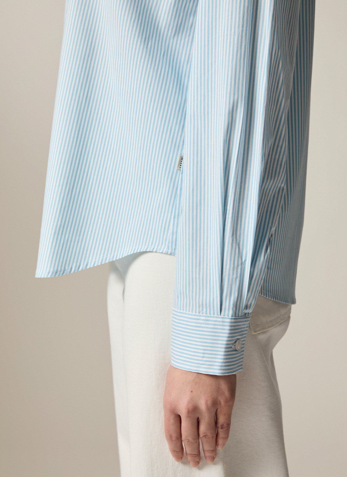 Der perfekte Office Begleiter – Die Streifenbluse kommt im Regular Fit mit durchgehender Knopfleiste. Die Quetschfalte auf der Rückseite sowie die Falten an den Ärmeln verleihen der Bluse einen femininen Touch und sind besondere Hingucker. Material: die hochwertige stretch Popeline garantiert hierbei hohen Tragekomfort, ist knitterarm und leicht zu bügeln. Styling-Tipp: Die Bluse eignet sich aufgrund ihrer schmalen Passform hervorragend als Unterziehbluse zu Pullovern.