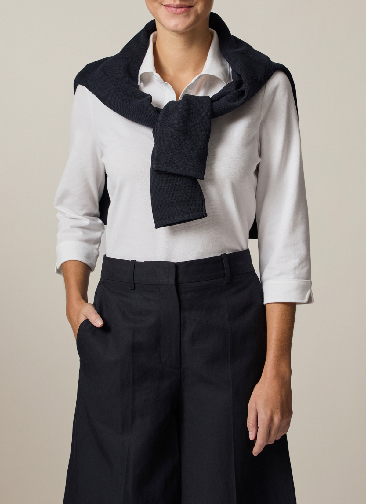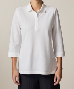 Feminines Poloshirt im klassischen Stil mit gewebtem Kragen undlanger schmaler Knopfleiste. Die Ärmel in dreiviertel Länge haben am Bundende einen kleinen angenehmen Schlitz. Material: das Poloshirt präsentiert sich klassisch in Piqué-Struktur. Die hochwertige Baumwolle ist besonders angenehm auf der Haut zu tragen und garantiert einen hohen Tragekomfort. Good to Know: Das Produkt ist zertifiziert nach Standard 100 by OEKO-TEX®.