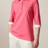 Feminines Poloshirt im klassischen Stil mit gewebtem Kragen undlanger schmaler Knopfleiste. Die Ärmel in dreiviertel Länge haben am Bundende einen kleinen angenehmen Schlitz. Material: das Poloshirt präsentiert sich klassisch in Piqué-Struktur. Die hochwertige Baumwolle ist besonders angenehm auf der Haut zu tragen und garantiert einen hohen Tragekomfort. Good to Know: Das Produkt ist zertifiziert nach Standard 100 by OEKO-TEX®.