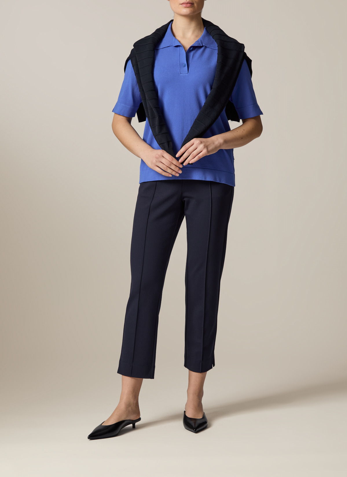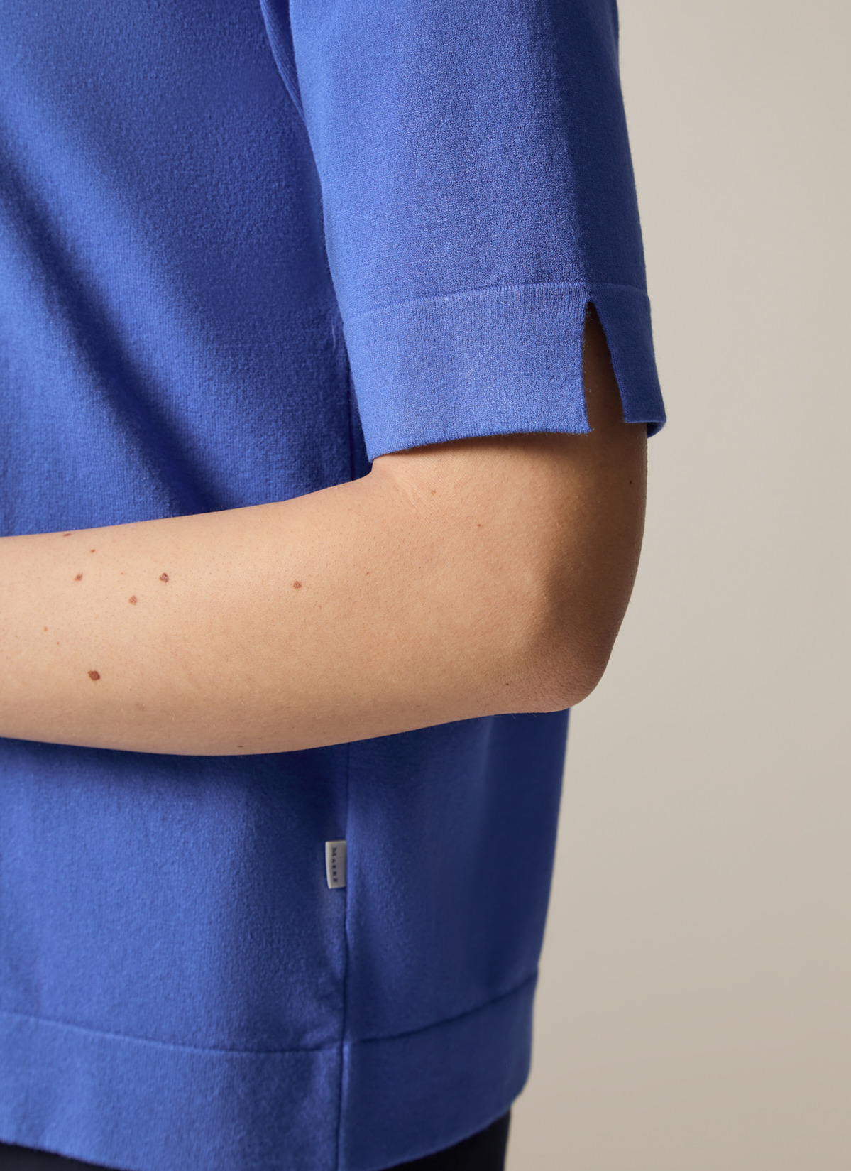 Der Pullover im Polo Stil zeigt sich im Regular Fit mit Knopfleiste und elegantem Polo Kragen. Die Schlitz Details an den Ärmeln sorgen für Tragekomfort. Material: Durch die Viskose-Mischung ist der Pullover elastisch und bleibt dennoch formstabil. Haptik: Der Pullover ist weich und glatt im Griff. Styling-Tipp: kombiniert mit der passenden Hose (Art. Nr. 399000) wirkt der Look besonders stimmig.