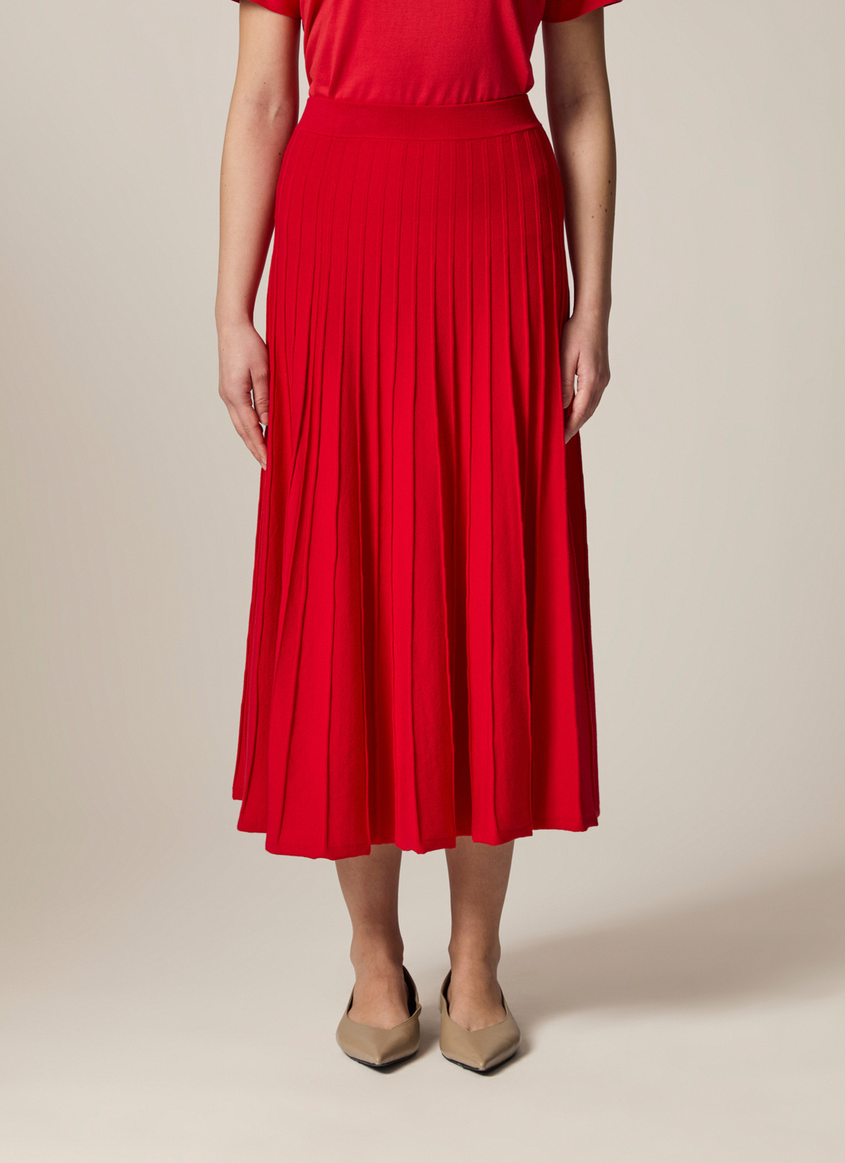 Der Rippenrock zeigt sich im Modern Fit mit Längsrippen Details. Der weite Schnitt sowie ein bequemer Gummibund sorgen für Tragekomfort. Material: Durch die Viskose-Mischung ist der Rock elastisch und bleibt dennoch formstabil. Haptik: Der Rock ist weich und glatt im Griff. Styling-Tipp: im Set kombiniert mit dem passenden Pullover (Art. Nr. 320500) wirkt der Look besonders modern.