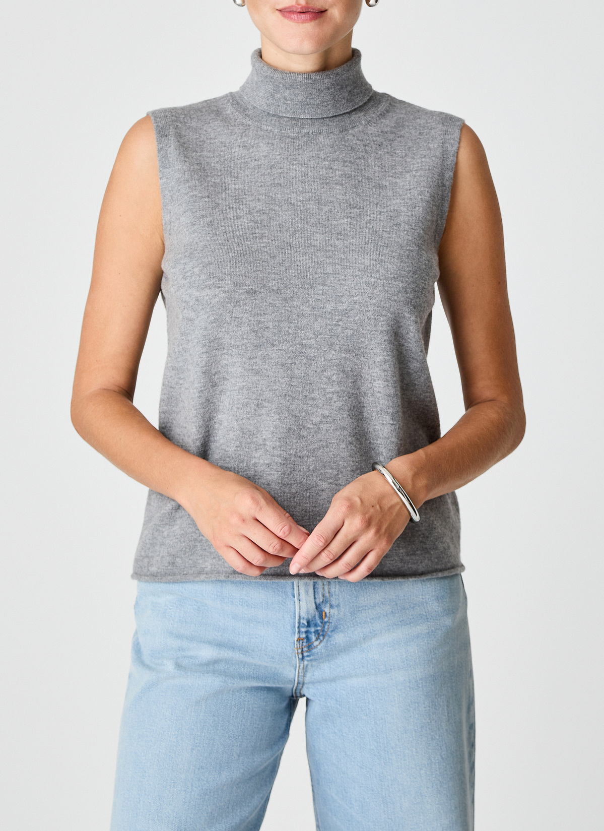 Kuschelig weiche Geelong-Wolle! Rollkragen Pullunder mit modernem Rollsaum und hochwertiger Geelong Qualität. Material: die hochwertige Geelong-Wolle ist mulesingfrei und wird in Italien zum Premiumgarn versponnen. Haptik: klassisches Maschenbild mit leichtem und softem Wollgriff. Tragegefühl: leicht und angenehm wärmend. Hochwertige Verarbeitung mit handgekettelten Nähten und elastischen Bündchen. Styling-Tipp: ganz nach dem Motto „Ton in Ton“ kombiniert mit unserer Strickjacke (Art. Nr. 244000).
