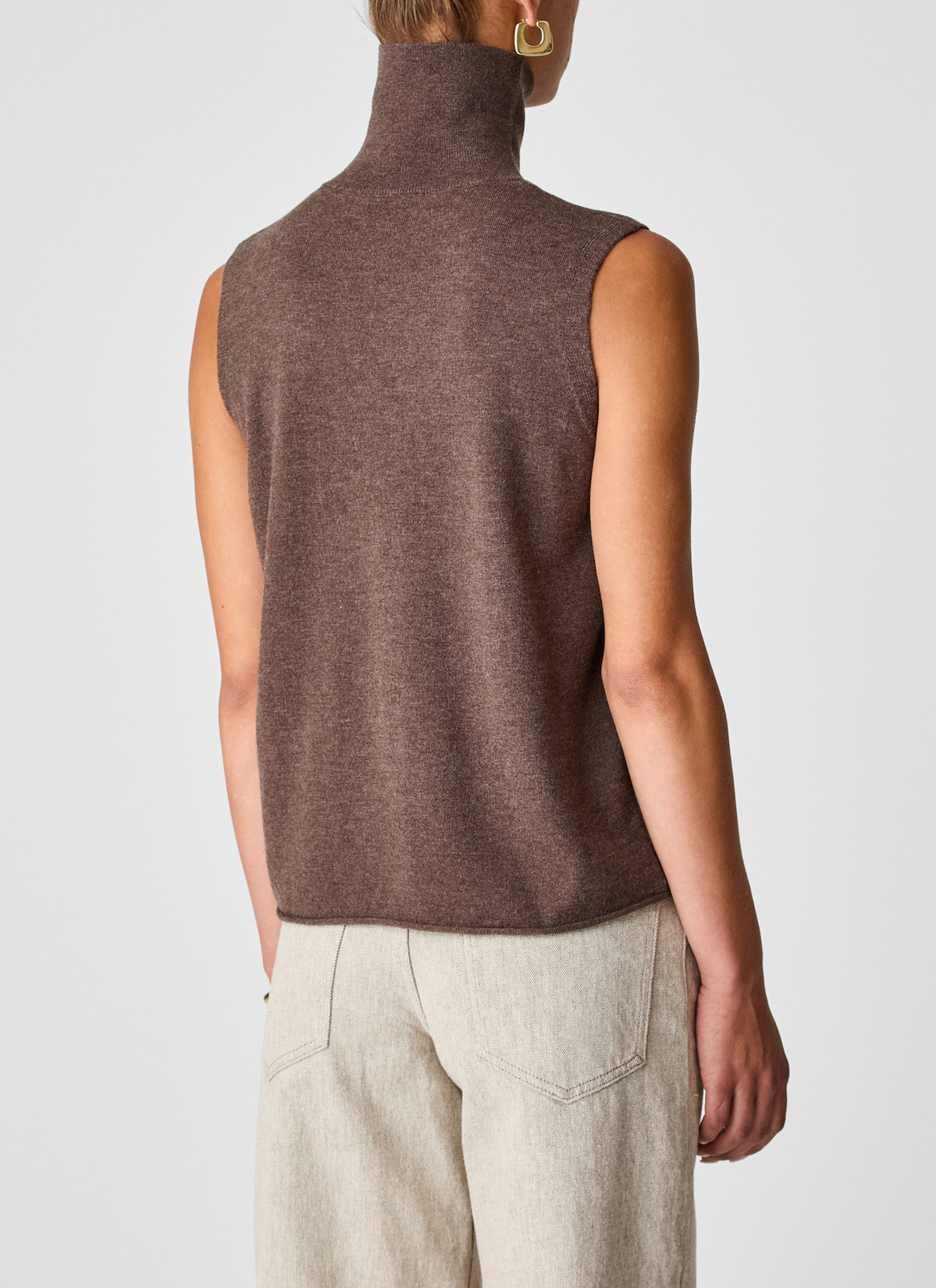 Kuschelig weiche Geelong-Wolle! Rollkragen Pullunder mit modernem Rollsaum und hochwertiger Geelong Qualität. Material: die hochwertige Geelong-Wolle ist mulesingfrei und wird in Italien zum Premiumgarn versponnen. Haptik: klassisches Maschenbild mit leichtem und softem Wollgriff. Tragegefühl: leicht und angenehm wärmend. Hochwertige Verarbeitung mit handgekettelten Nähten und elastischen Bündchen. Styling-Tipp: ganz nach dem Motto „Ton in Ton“ kombiniert mit unserer Strickjacke (Art. Nr. 244000).