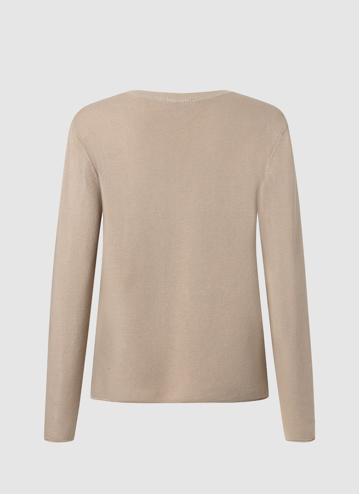 Der Rundhalspullover zeigt sich mit Rippen Halsbündchen und Rollkanten an Ärmeln und Saum. Material: gefertigt aus 100% Bio-Baumwolle ist der Pullover besonders hautfreundlich und besitzt einen edlen Glanz. Haptik: der Pullover ist kühl und kompakt im Griff. Styling-Tipp: einfach mit einer farblich passenden Lieblingshose kombinieren.