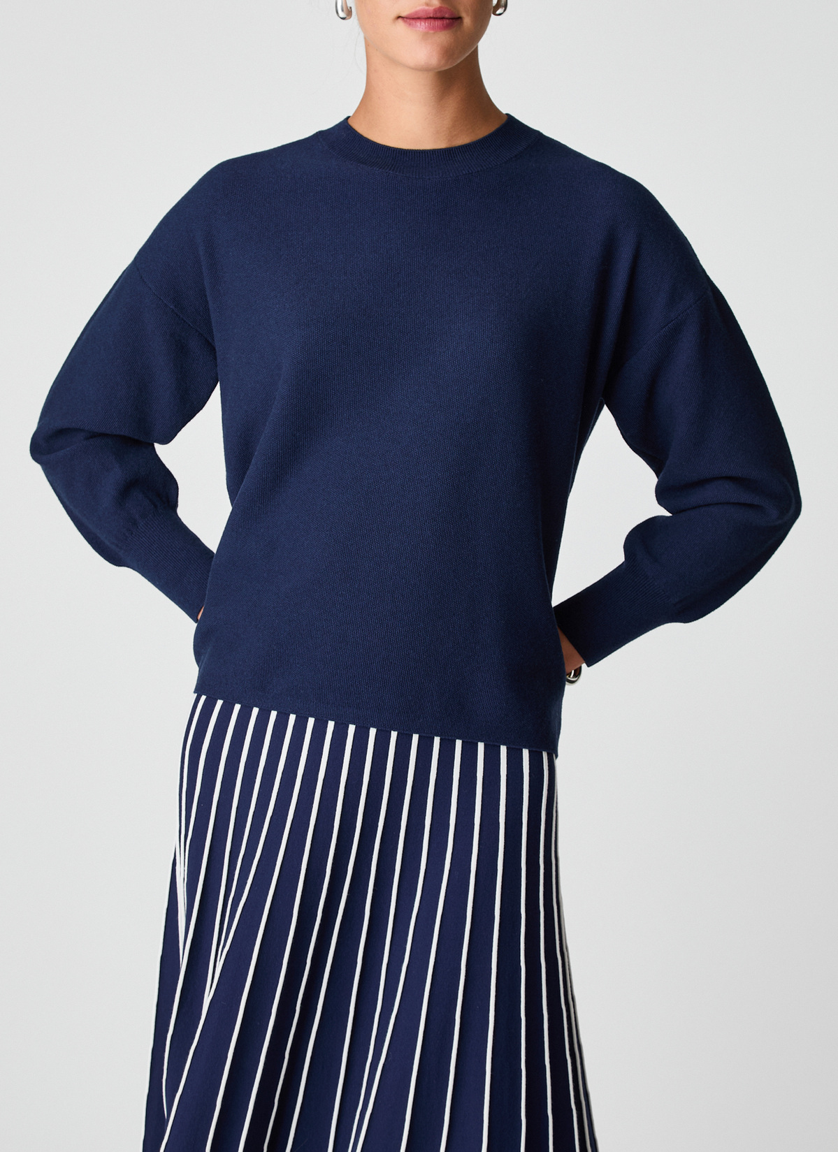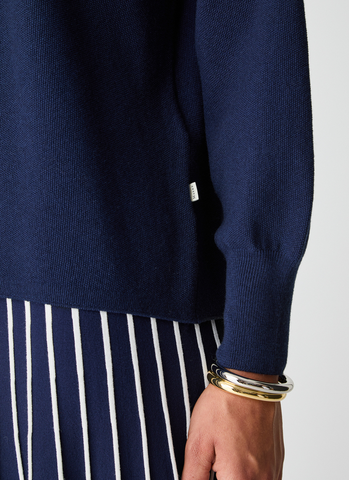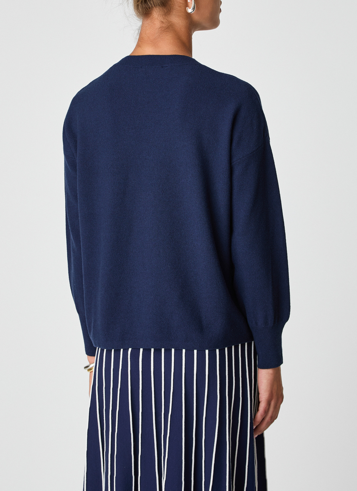 Ein Pullover, der Komfort und Stil mühelos verbindet: Der klassische Rundhalsausschnitt, überschnittene Schultern und der legere Oversized Fit verleihen diesem Modell eine moderne, entspannte Ausstrahlung. Gefertigtaus feiner Merinowolle und weicher Baumwolle ist der Pullover wunderbar temperaturregulierend, atmungsaktiv und angenehm auf der Haut. Der Griff ist körnig und zugleich weich, was dem Pullover eine besondere Haptik und Struktur verleiht. Die hochwertige Verarbeitung und dezente Stricktextur machen ihn vielseitig kombinierbar – ob zu Jeans, Stoffhosen oder Röcken. Ideal für kühlere Tage, an denen Komfort und Stil gleichermaßen gefragt sind. Ein vielseitiges Strickteil mit dem gewissen Etwas.