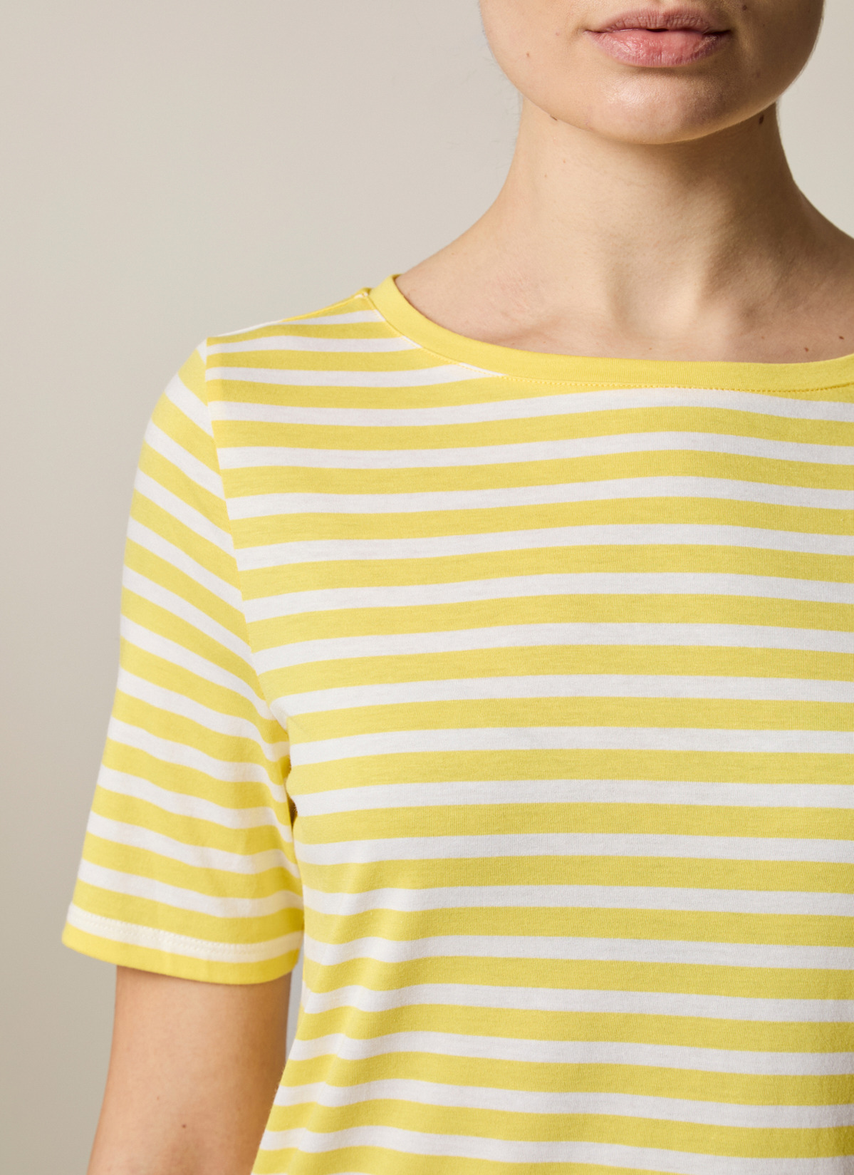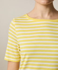 Das Streifen Shirt – eines unserer liebsten Muster-Basics. Dieses absolute Muss in jedem Kleiderschrank ist ein echtes Kombinationstalent. Es zeigt sich gerade geschnitten im Regular Fit mit klassischem Rundhalsausschnitt und halblangen Ärmeln. Material: Gefertigt aus Single-Jersey in einer Baumwoll-Modal Mischung ist das Shirt weich, atmungsaktiv und feuchtigkeitsregulierend. Haptik: glatt und angenehm auf der Haut.