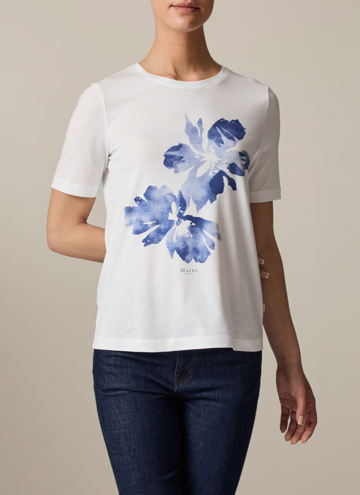 Basic Shirt mit femininem Charme! Das Rundhalsshirt im Regular Fit besticht durch sein einzigartiges florales Statement Motiv auf der Vorderseite. Material: Material: Gefertigt aus Single-Jersey in einer Baumwoll-Modal Mischung ist das Shirt weich, atmungsaktiv und feuchtigkeitsregulierend. Haptik: glatt und angenehm auf der Haut.