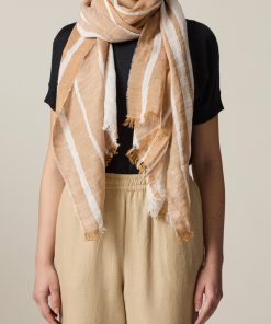 Der Schal zeigt sich in klassischem Streifenmuster. Gefertigt aus 100% Leinen ist er wunderbar leicht und ideal für warme Tage. Haptik: griffig und kühl.