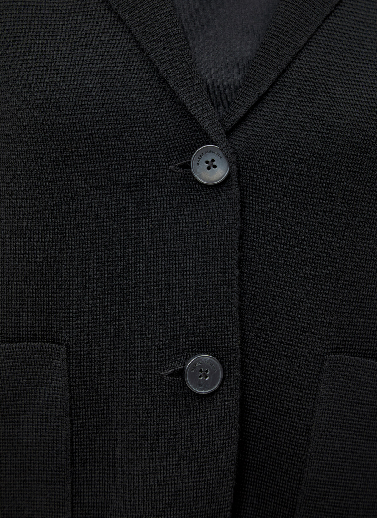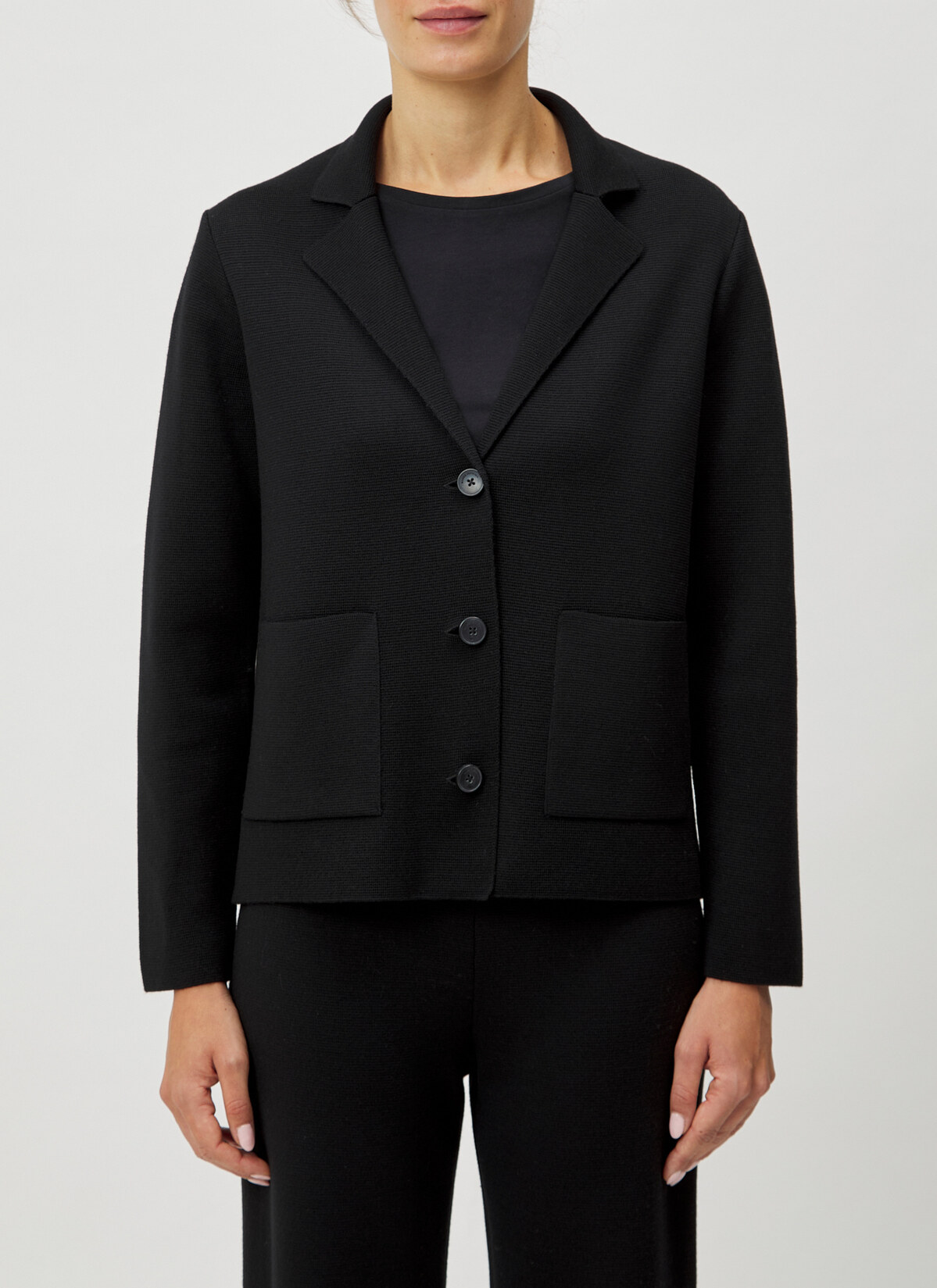 Der moderne Klassiker: Strickblazer! Dieses Modell überzeugt durch das klassische Design mit Reverskragen und einer hochwertigen Milano Rib Struktur. Material: Merinowolle hat einen hohen Tragekomfort, ist feuchtigkeitsregulierend, geruchsneutral und besitzt eine wärmende sowie temperaturausgleichende Funktion. Elastisch und Formstabil. Haptik: kerniger, kompakter Griff. Hochwertige Verarbeitung mit handgekettelten Nähten und elastischen Bündchen.