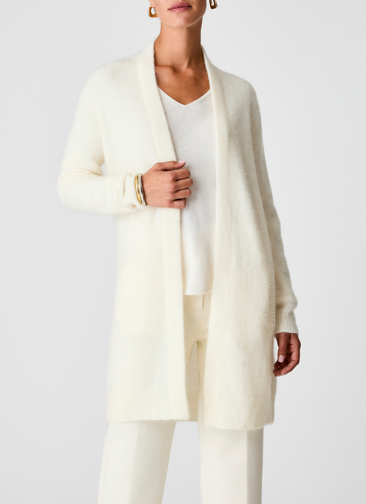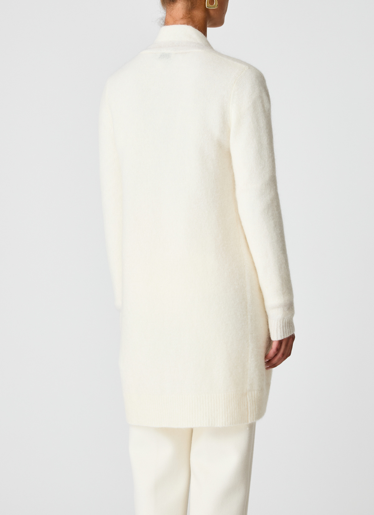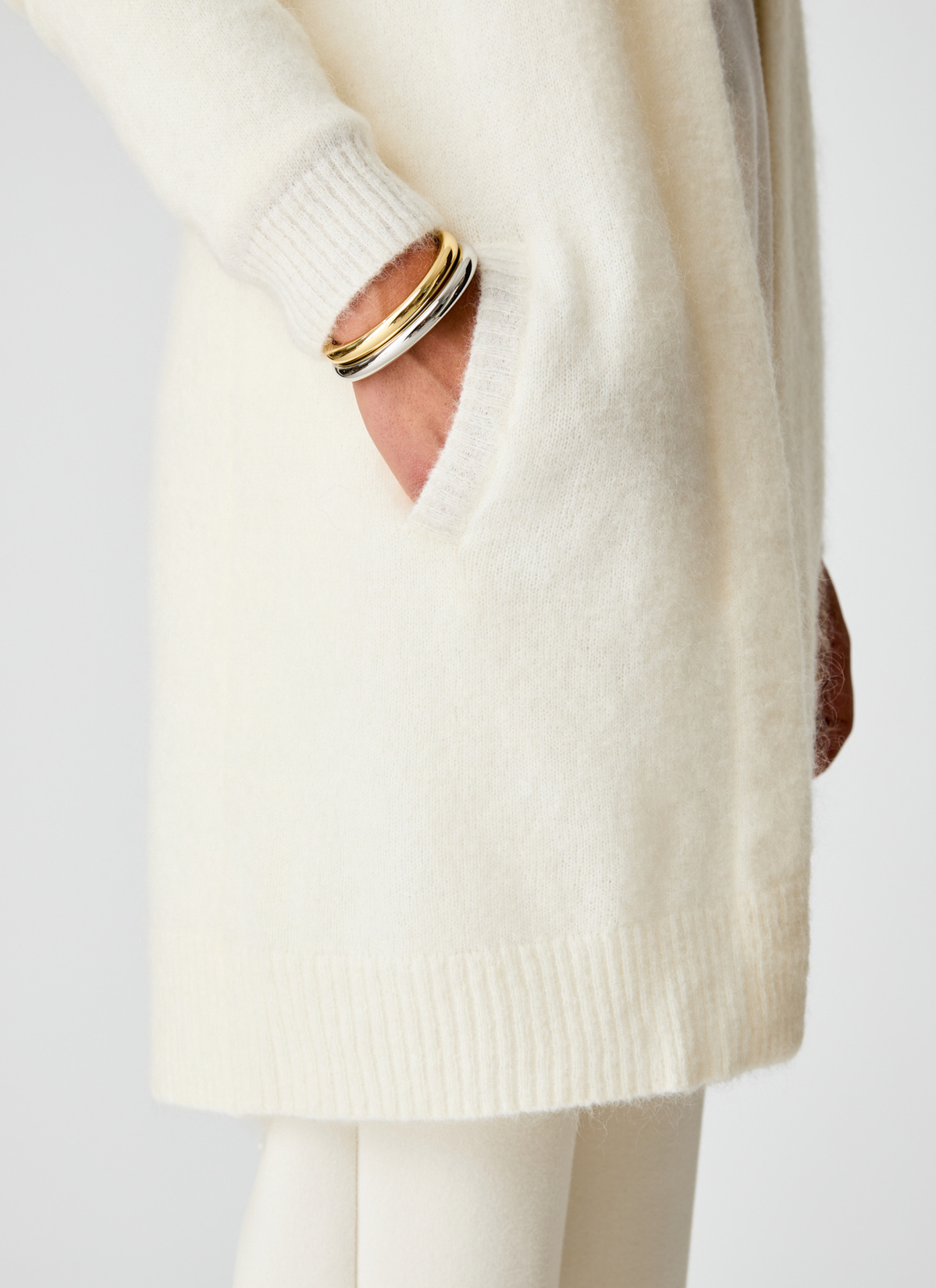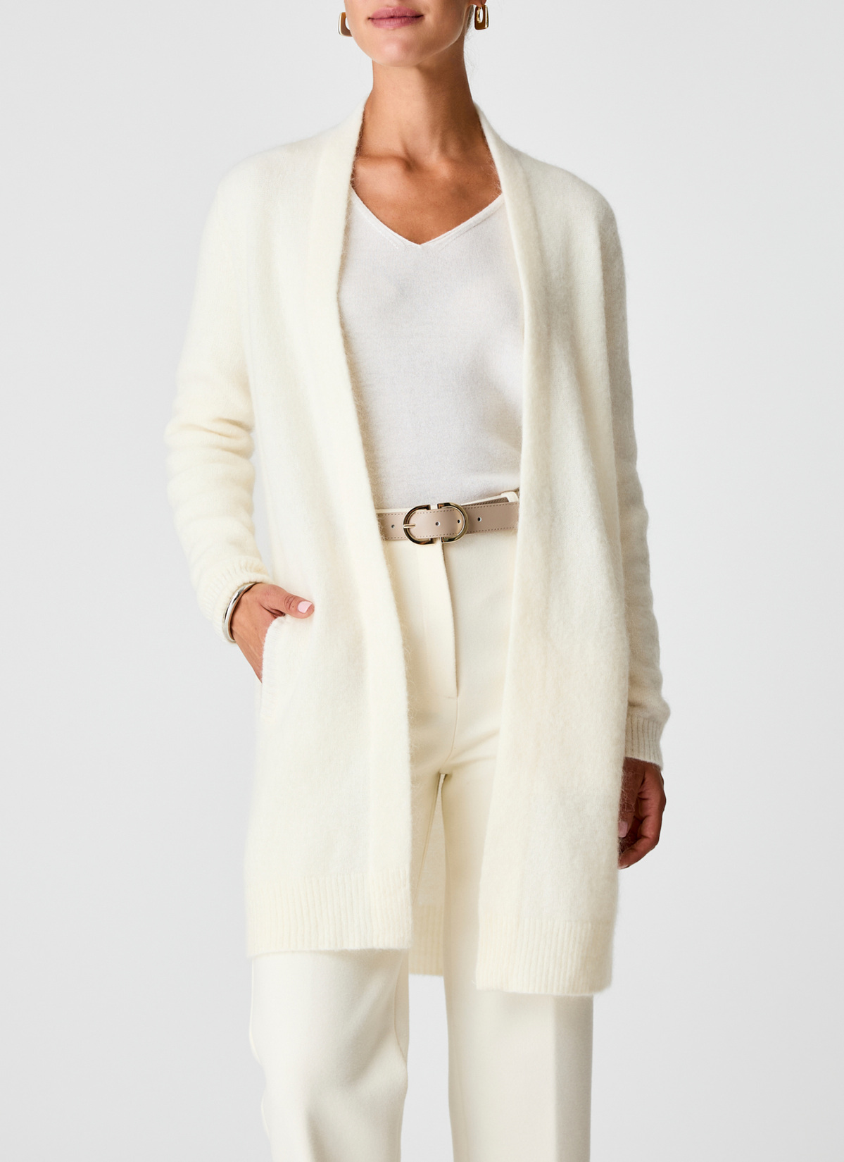 Strickjacke im lässigen Loose Fit aus super weichem und kuschligem Mohair-Mix. Material: Die Materialmischung ist extrem weich, leicht auf der Haut und im Winter besonders wärmend. Durch die besondere Materialkombination bleiben Deine Lieblingsteile auch knitterfrei. Styling-Tipp: kombiniert mit einer Bluse wird der Look elegant.