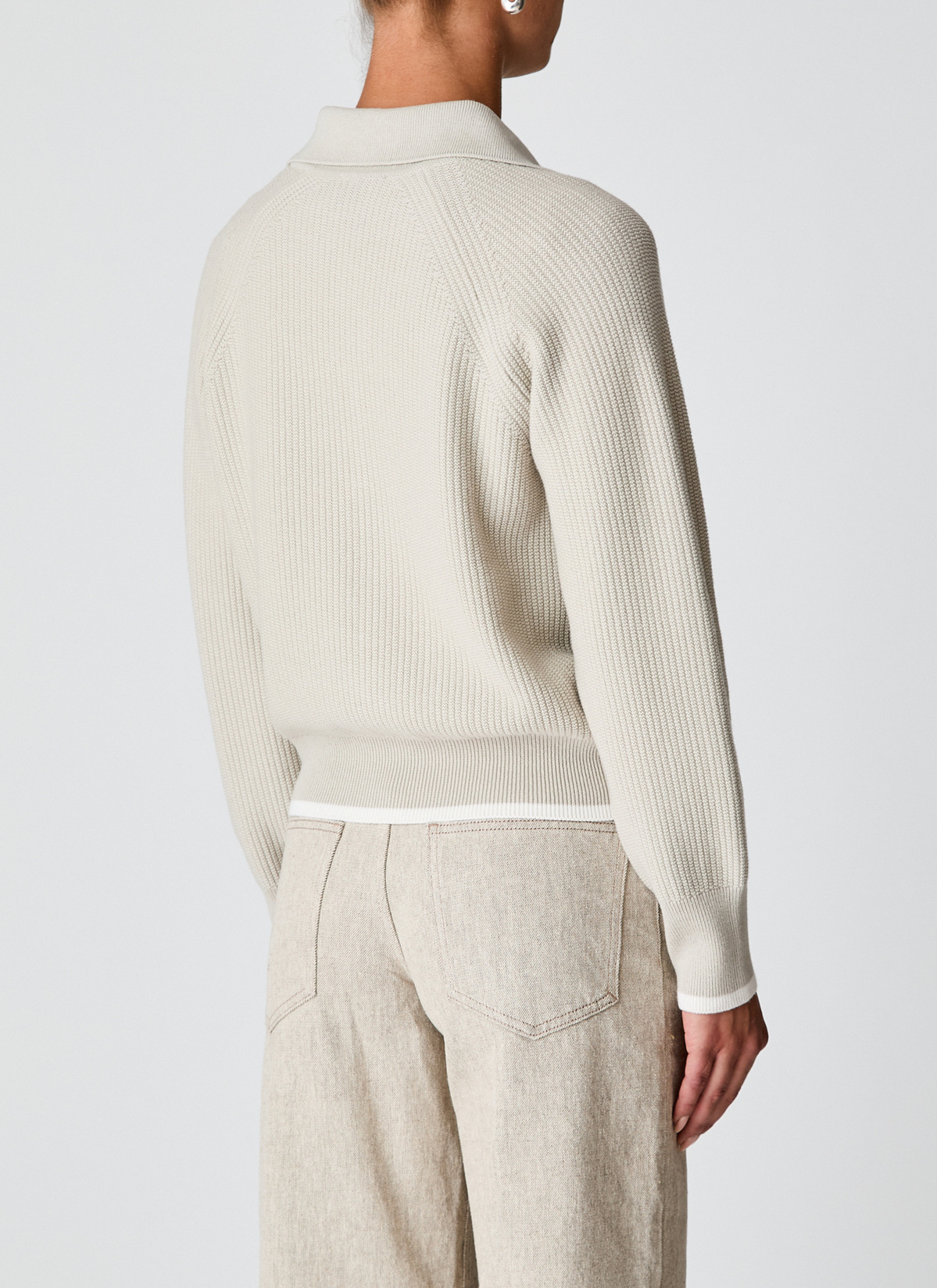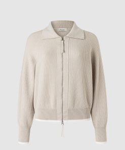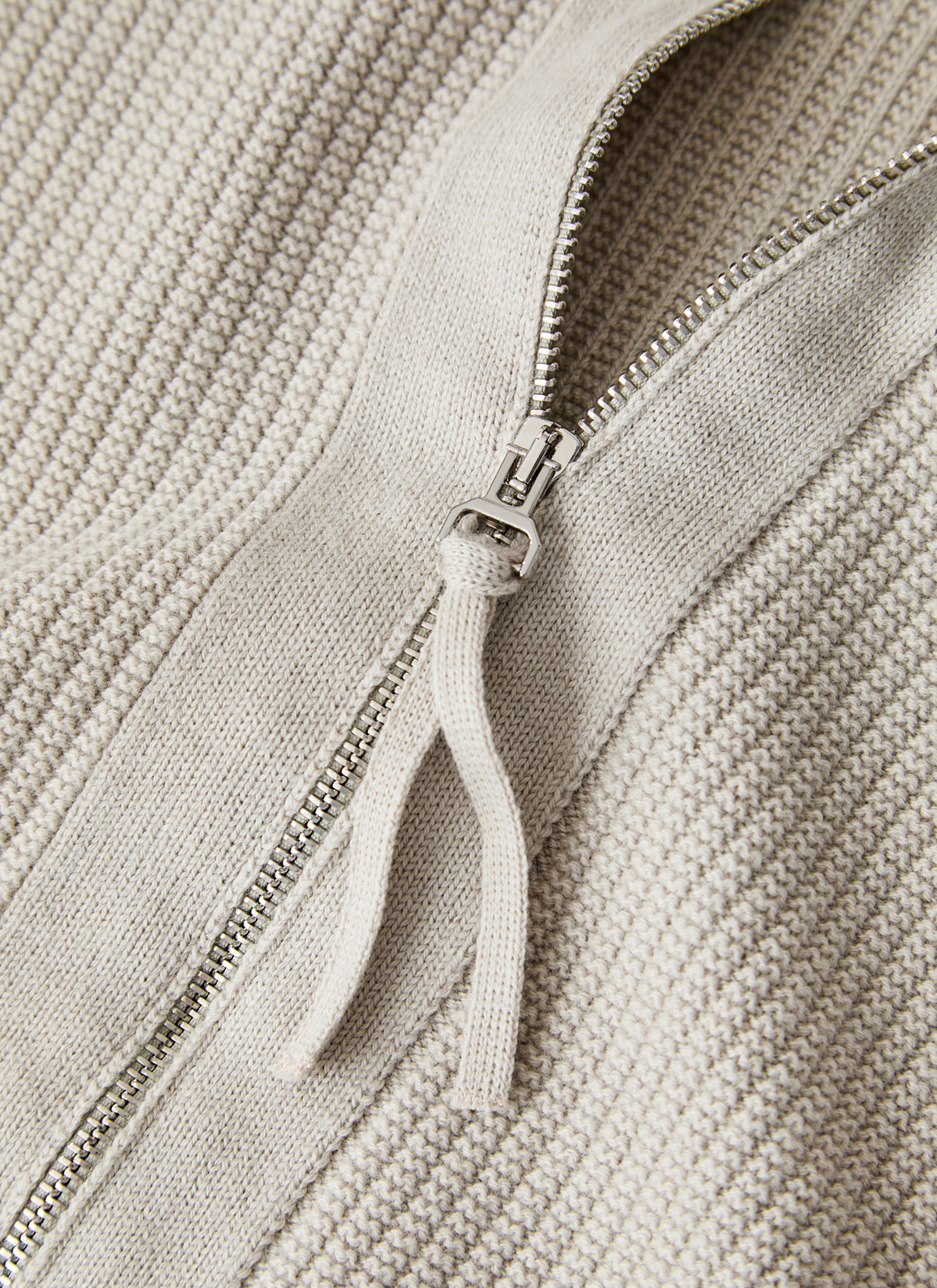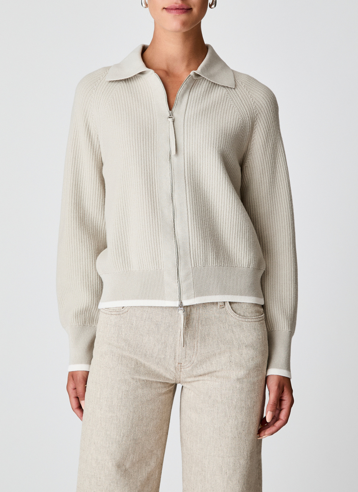 Diese Damen Strickjacke mit Reißverschluss und Umlegekragen verbindet sportliche Details mit modernem Komfort. Der lockere Schnitt, überschnittene Schultern und eine leicht voluminöse Form sorgen für eine lässige Silhouette mit viel Bewegungsfreiheit. Kontraststreifen am Saum setzen einen stilvollen Akzent und verleihen dem Design eine frische Note. Die hochwertige Mischung aus Schurwolle und Baumwolle ist atmungsaktiv, temperaturregulierend und angenehm weich – ideal für kühlere Morgen und wechselhafte Tage. Ein vielseitiges Layering-Piece für entspannte Looks mit modischem Anspruch.