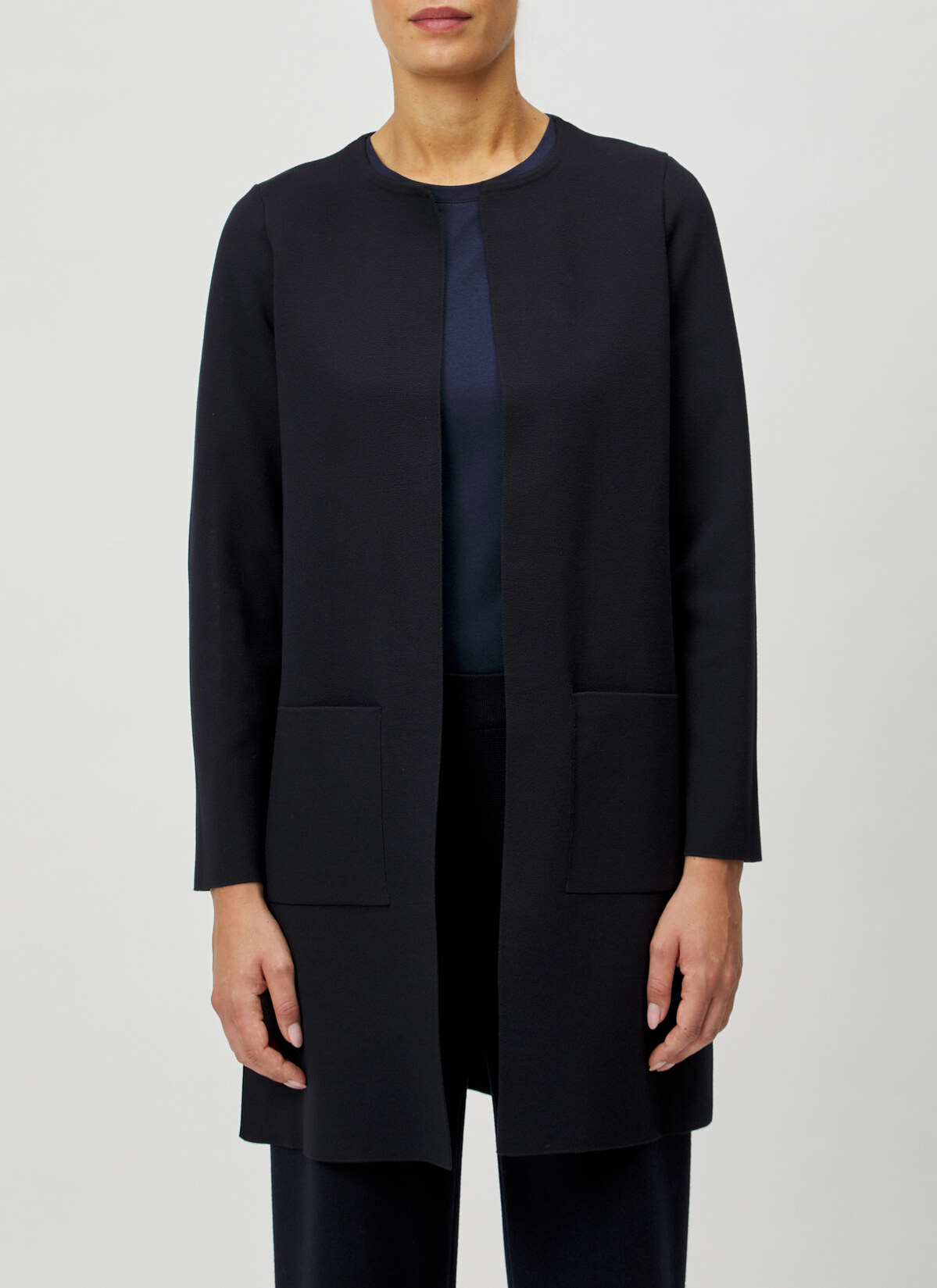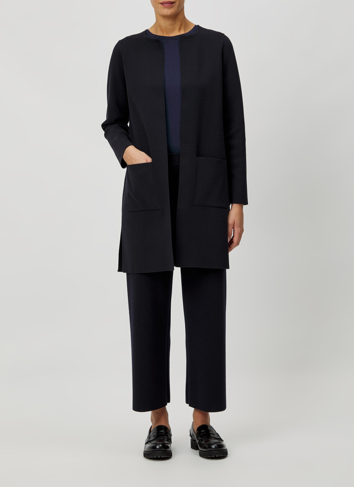 Ein Strickmantel mit sportiver Lässigkeit im Regular Fit! Der offene Strickmantel überzeugt vor allem durch die entspannte Schnittführung, zwei aufgesetzte Taschen sowie die Seitenschlitze für mehr Bewegungsfreiheit. Material: Durch die Viscose-Mischung und die hochwertige Stricktechnik im Milano Rib ist der Strickmantel elastisch und bleibt dennoch formstabil. Haptik: glatte Oberfläche mit kühlem und festem Griff.