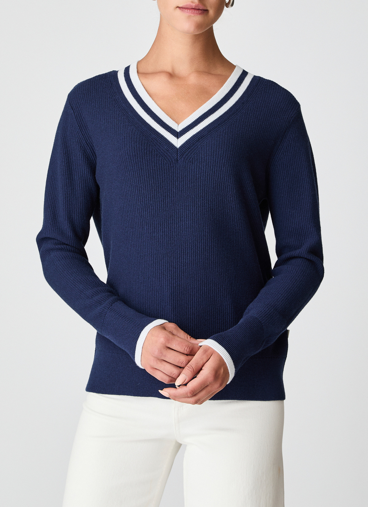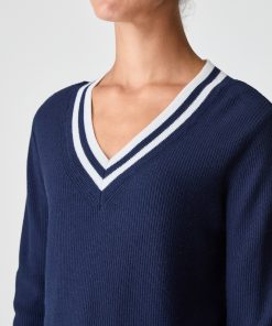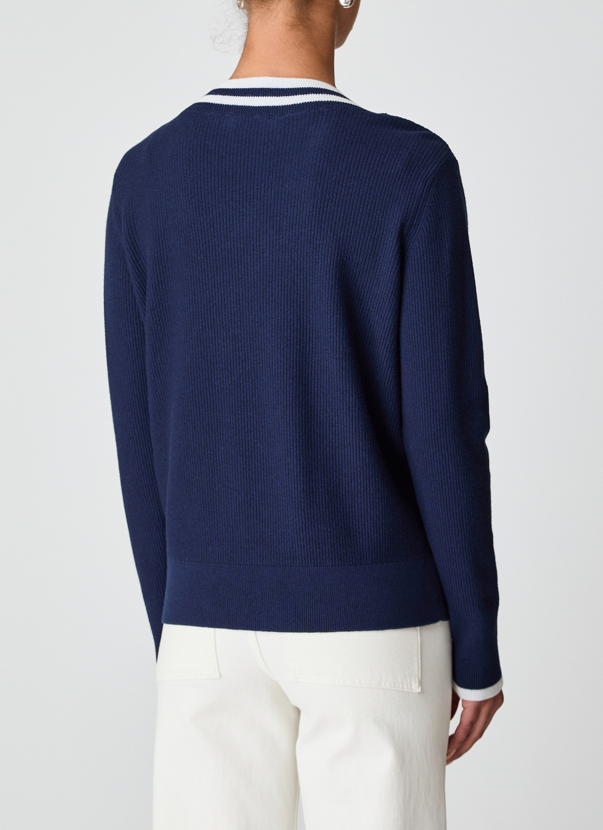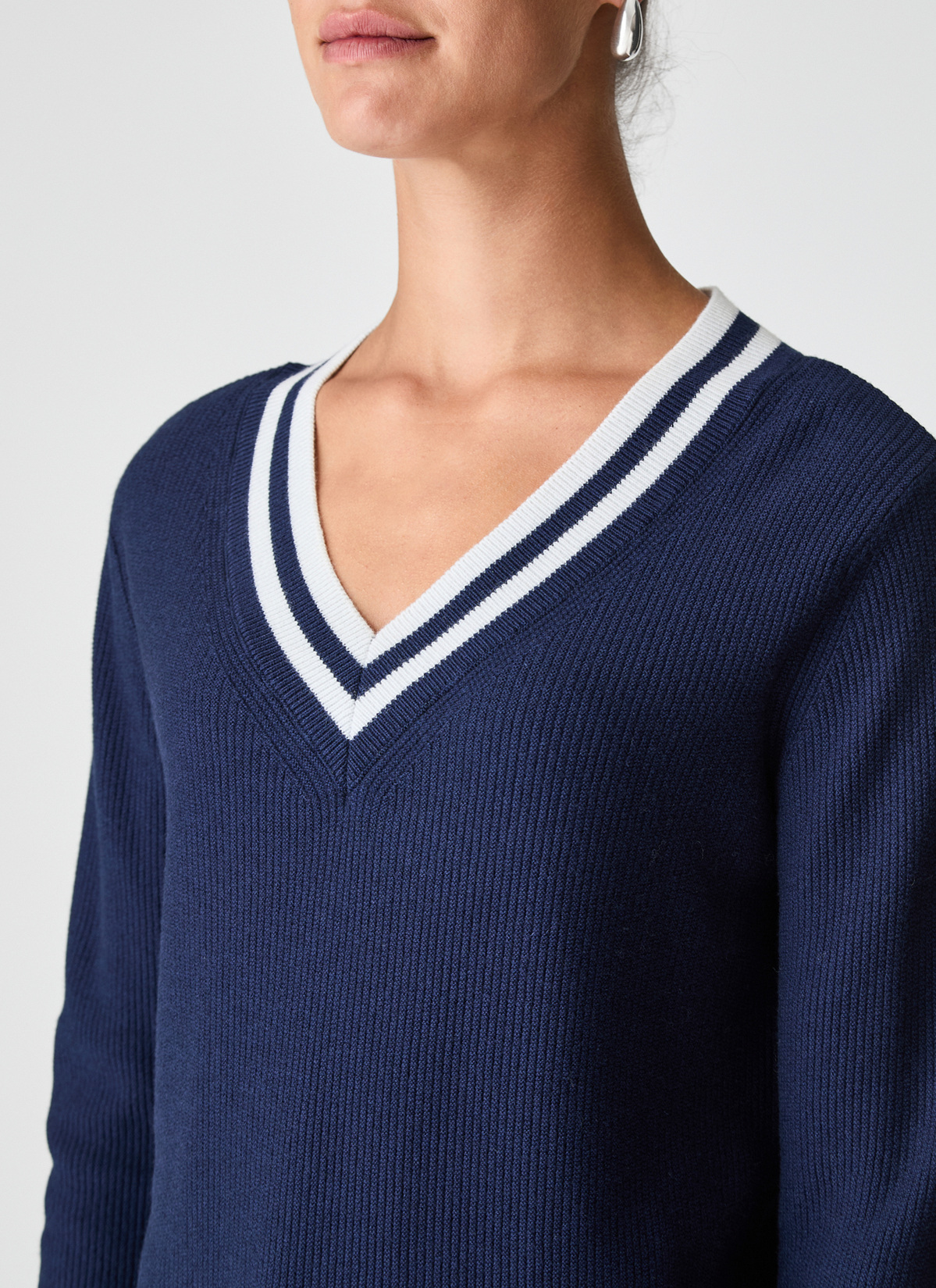 Dieser Damenpullover überzeugt durch eine hochwertige Mischung aus Merinowolle und weicher Baumwolle – für natürliche Wärme, Atmungsaktivität und langanhaltenden Tragekomfort. Die Fasern verbinden die temperaturregulierenden Eigenschaften der Wolle mit der Hautfreundlichkeit der Baumwolle. Der lockere Loose Fit sorgt für ein angenehmes Tragegefühl, ohne einzuengen. Ein farblich abgesetzter V-Ausschnitt bringt dezenten Kontrast ins Design und betont das Dekolleté. Auch die Ärmelabschlüsse sind farblich abgesetzt und setzen stilvolle Akzente. Das Material liegt leicht auf der Haut und hält gleichzeitig angenehm warm, ideal für wechselhafte Tage. Die hochwertige Verarbeitung sorgt für Formstabilität auch nach häufigem Tragen. Perfekt für alle, die natürliche Materialien und zeitloses Design schätzen.